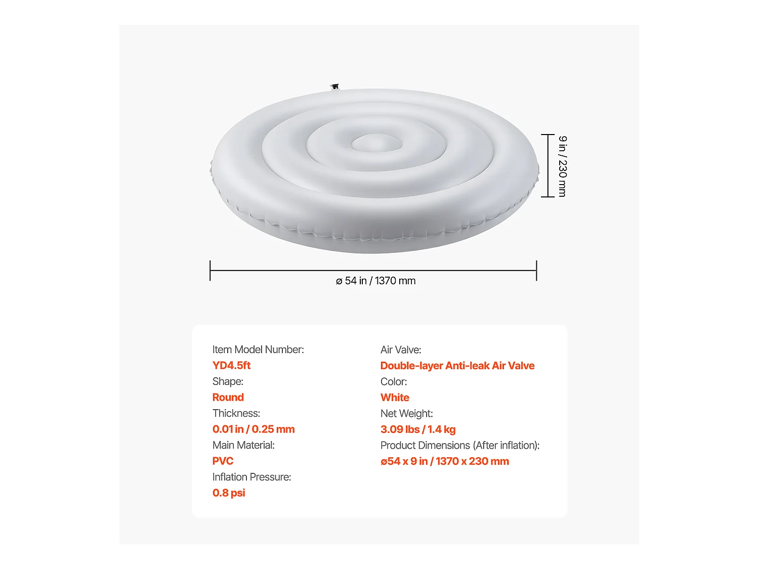 Couvercle Gonflable Rond SucceBuy pour Spa 137 cm, Housse de Protection pour Spa Résistante aux Intempéries et à l'Eau, Couverture Thermique en PVC, Blanc