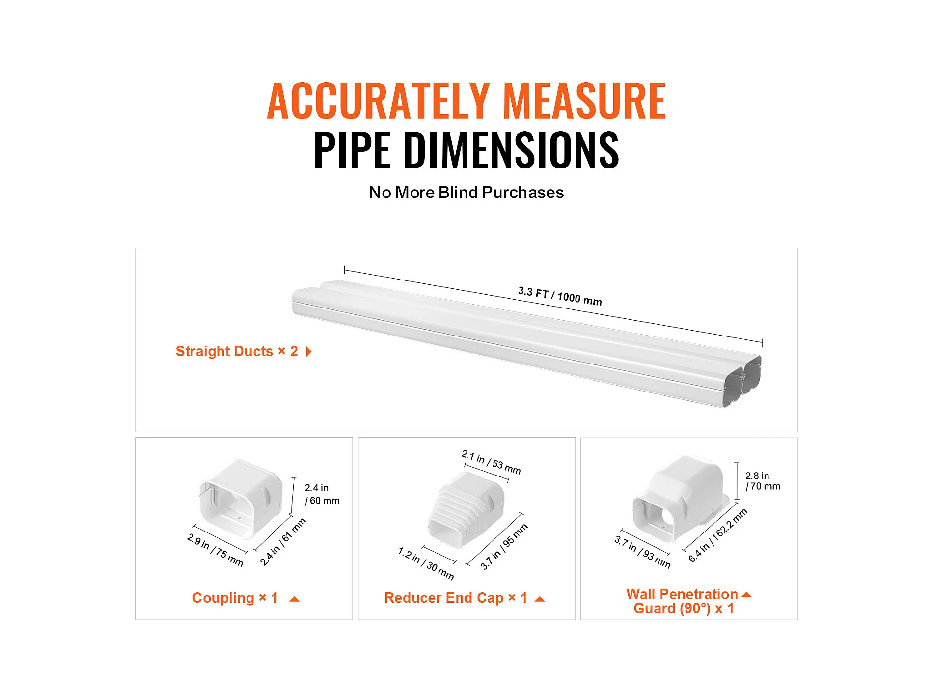 Couvercle de Ligne SucceBuy 7.62cm de Largeur 540 cm pour Mini-Split/Climatiseur, PVC Décoratif pour Climatiseur, 10 Conduits Droits et Composants
