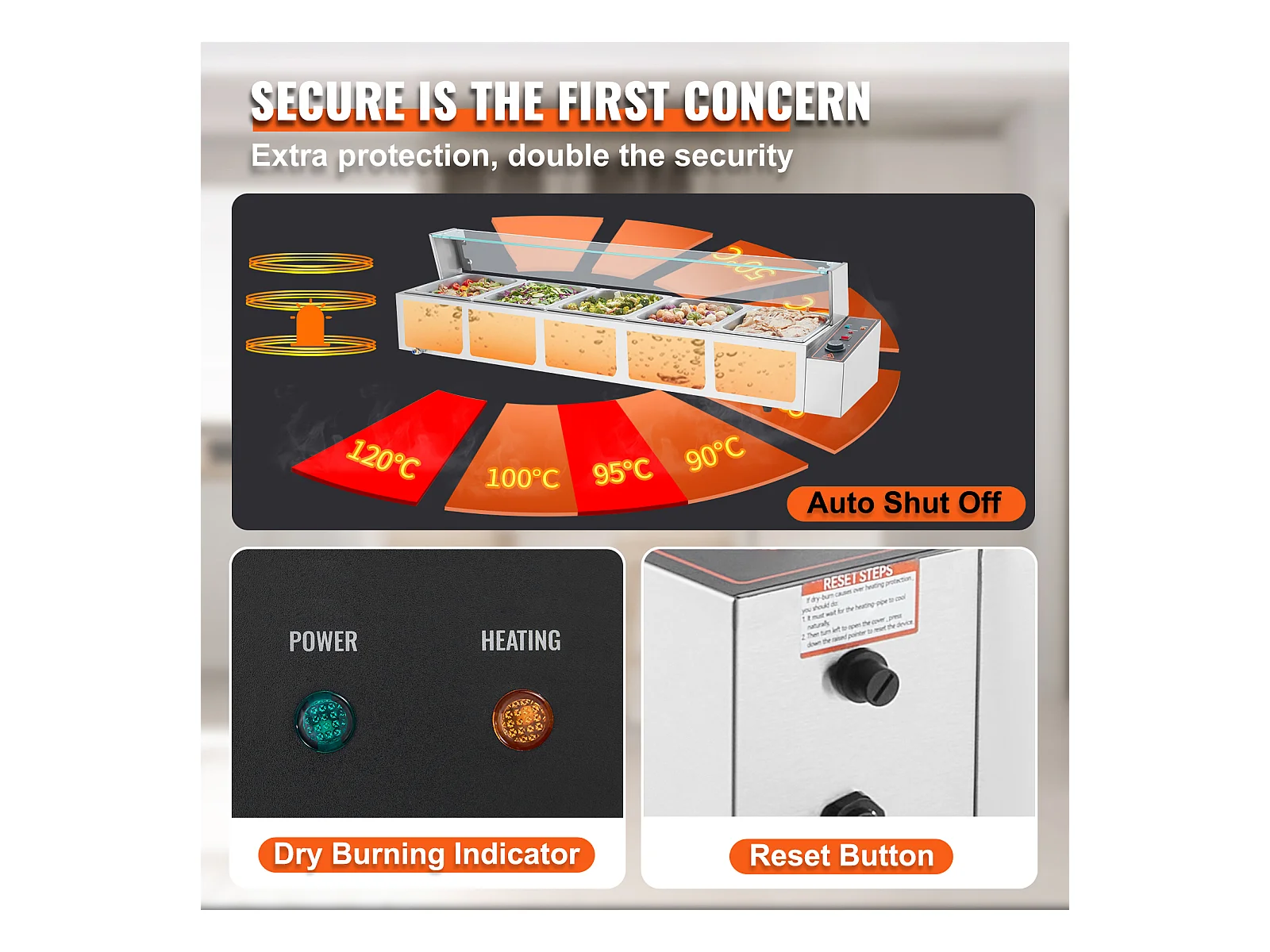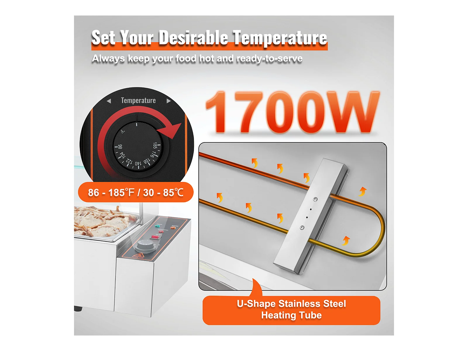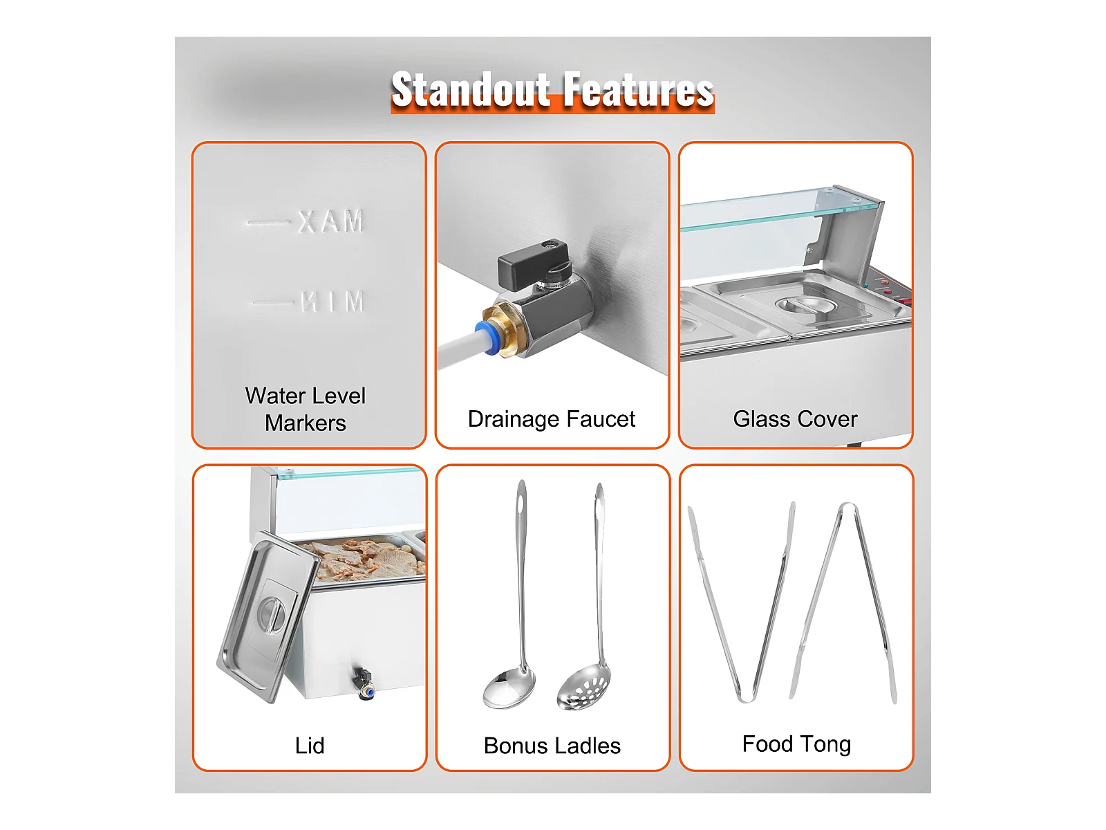 Cuiseur SucceBuy Buffet de Comptoir Chauffe-Plats Électrique Commercial, 5*7.6L avec Bouclier en Verre