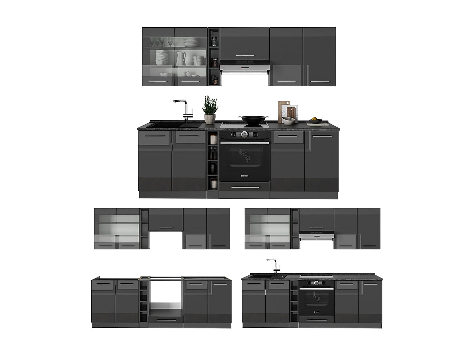 Cuisine anthracite haute brillance 235x46x81.6 fame-line