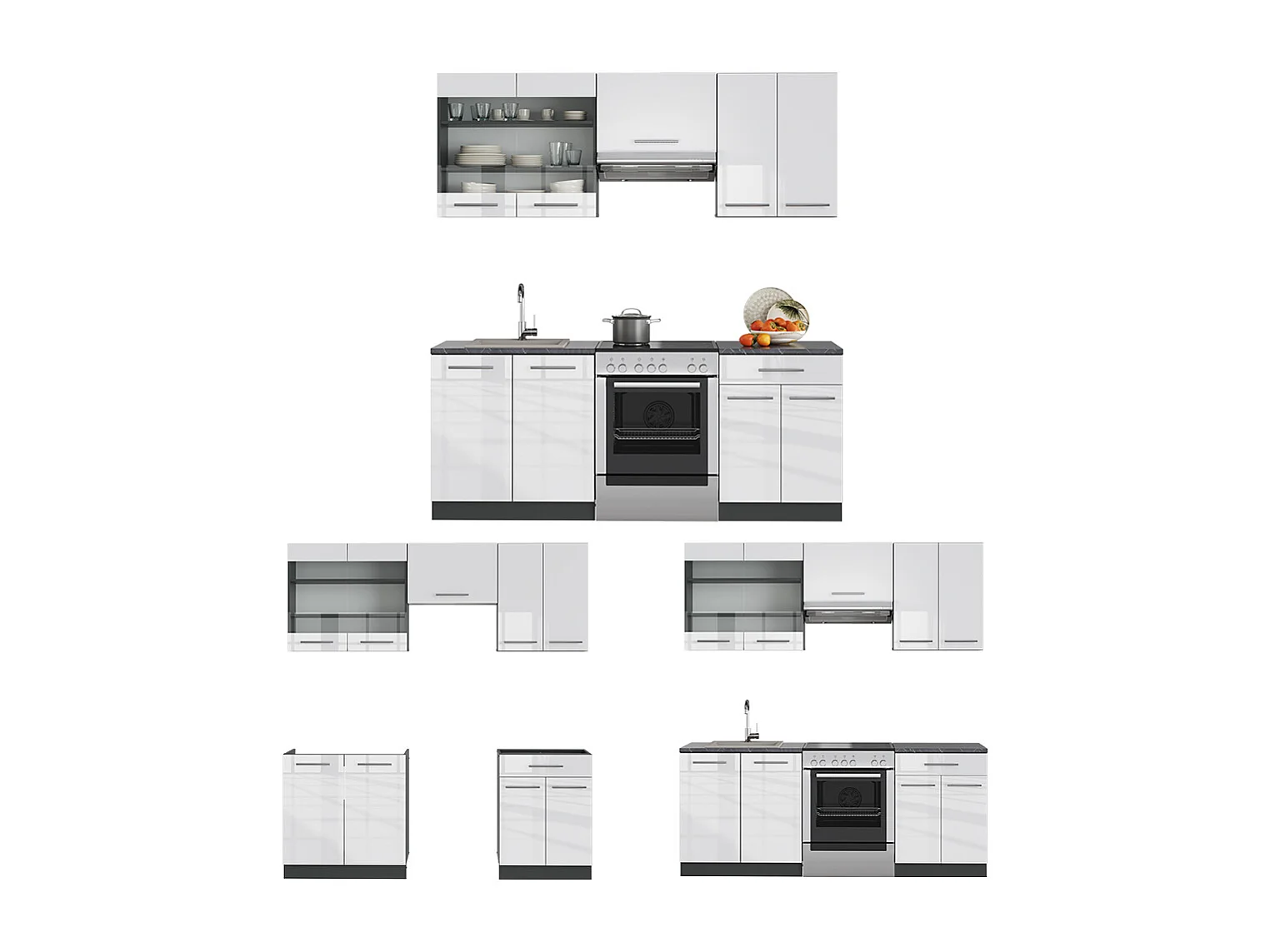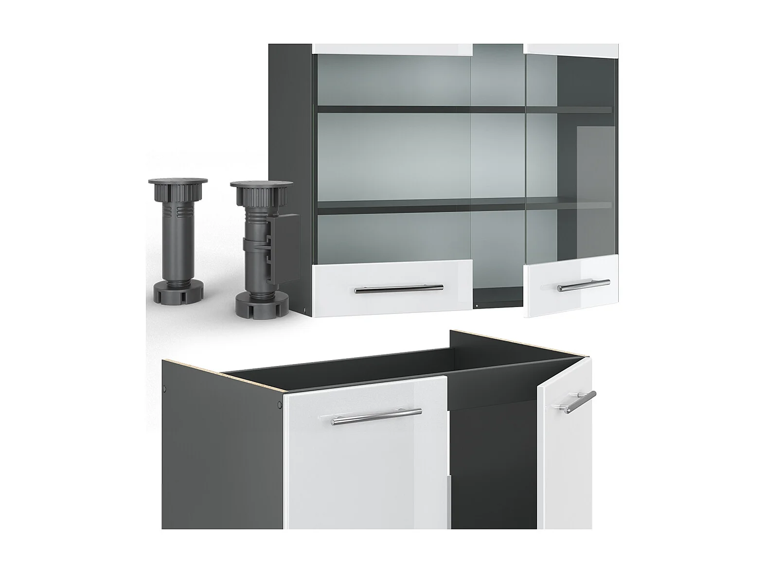 Cuisine blanc brillant/anthracite 200x60x81.6 fame-line