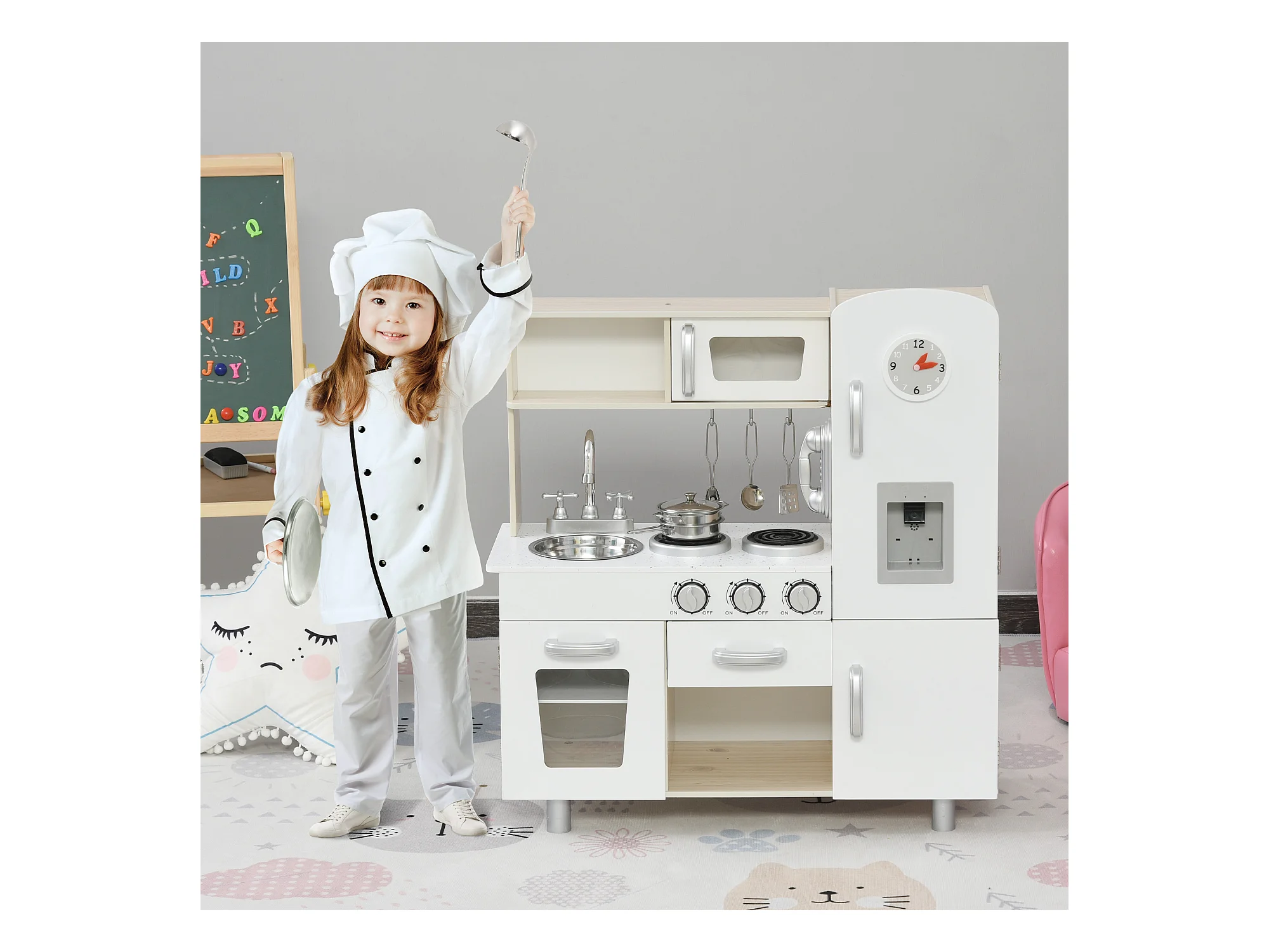 Cuisine pour enfant jeu d'imitation nombreux accessoires rangements évier réfrigérateur téléphone blanc