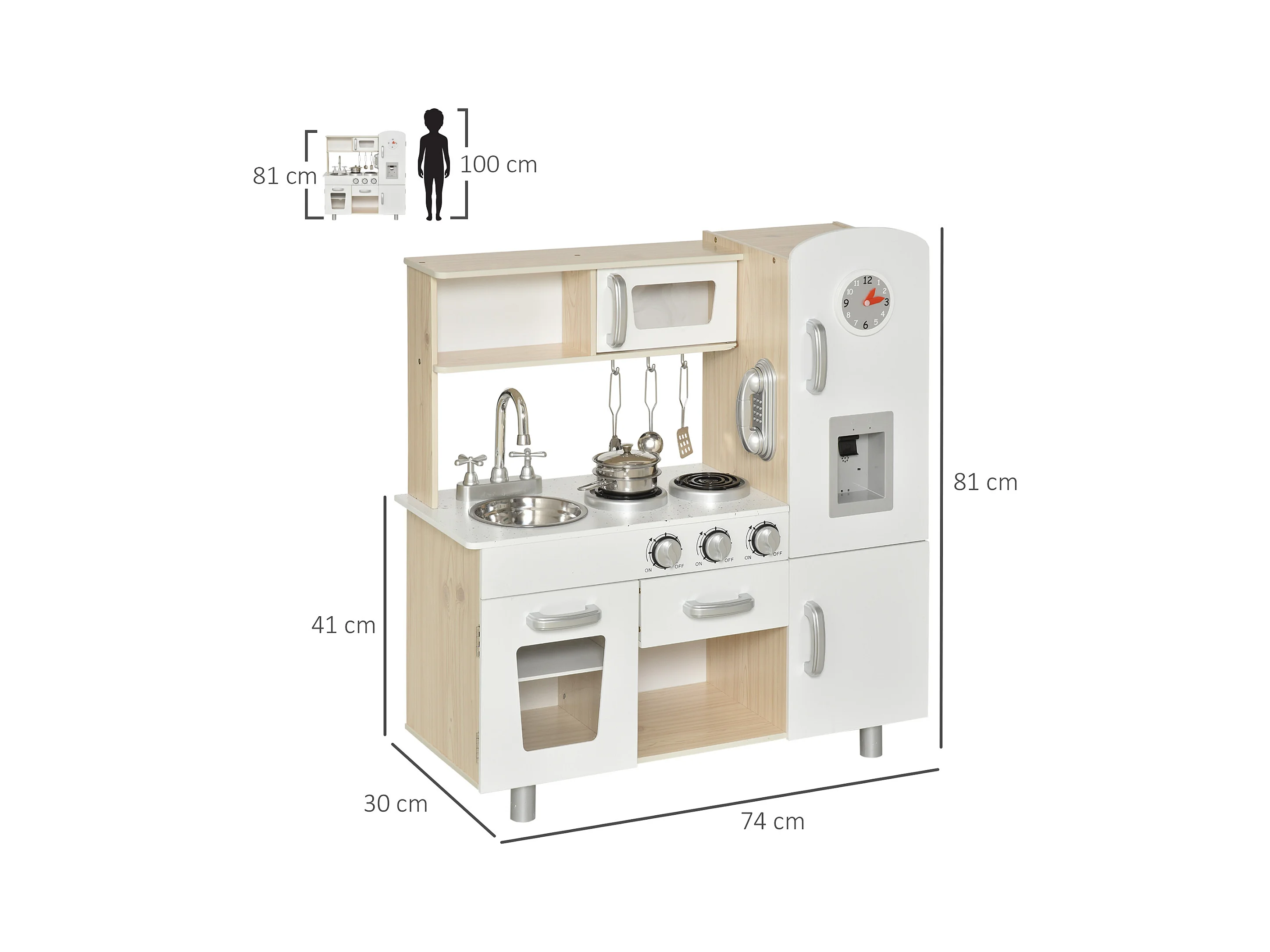 Cuisine bois jeu d'imitation - cuisine enfant - nombreux accessoires & rangements inclus - MDF pin blanc chêne clair