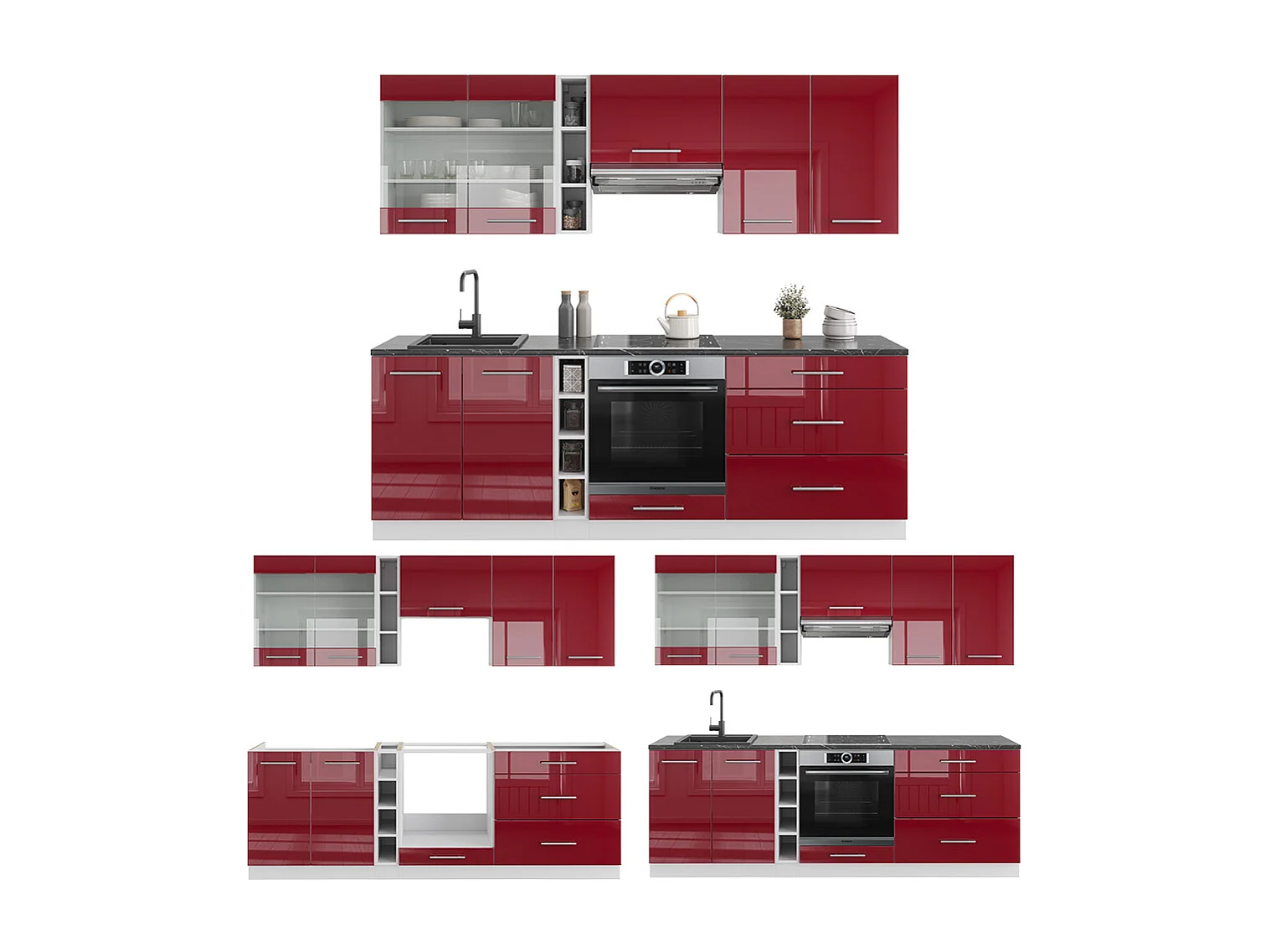 Cuisine bordeaux haute brillance/blanc 235x60x81.6 fame-line