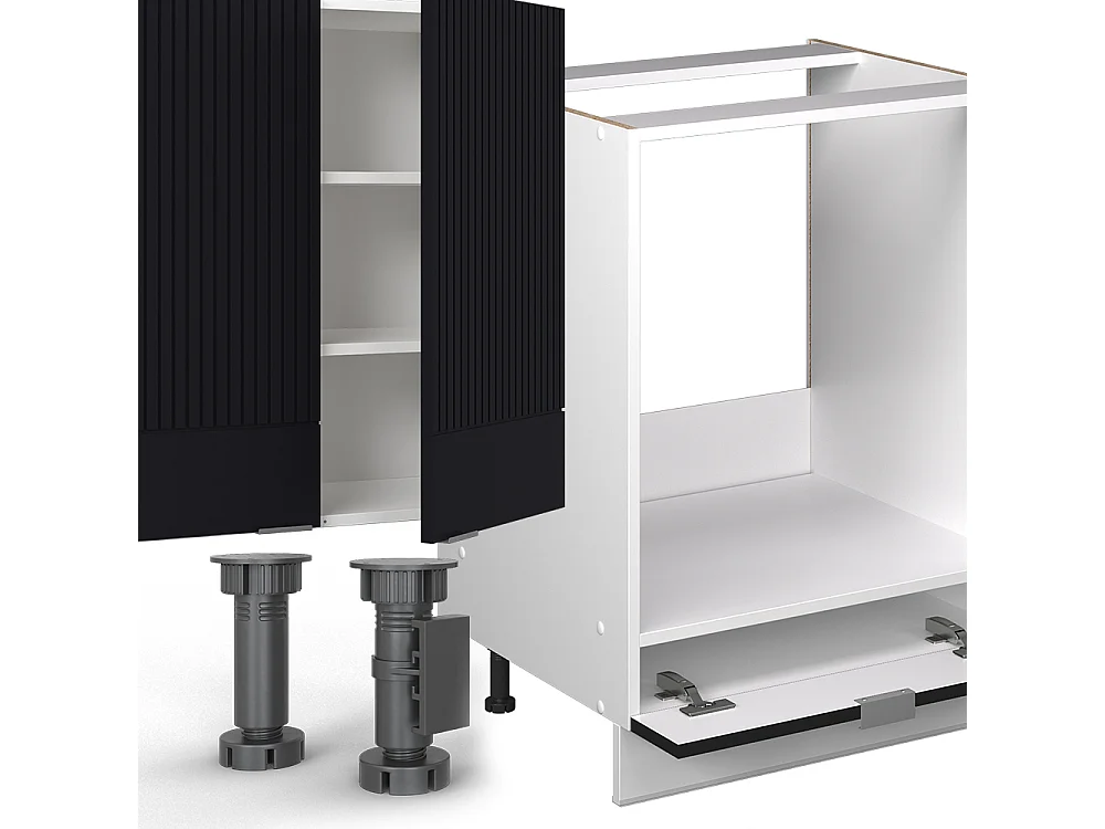 Cuisine en angle noir rayé/blanc 347x60x81.6 fame-line