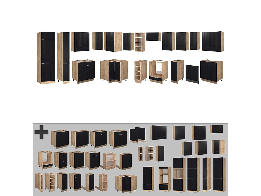 Cuisine en angle noir rayé/chêne doré 347x60x81.6 fame-line