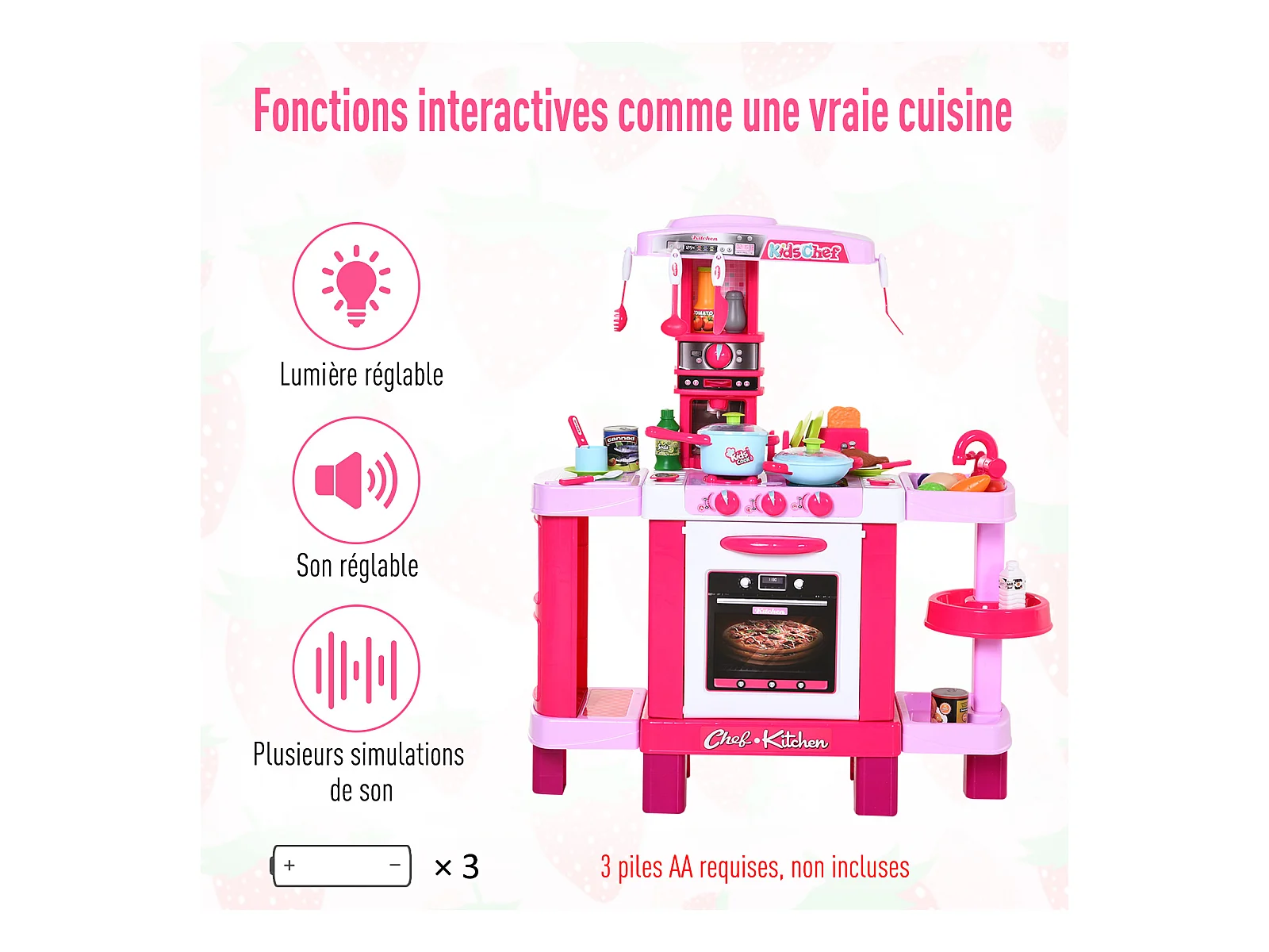 Cuisine pour enfant recettes jeu d'imitation 38 accessoires inclus sons et lumières polypropylène rose
