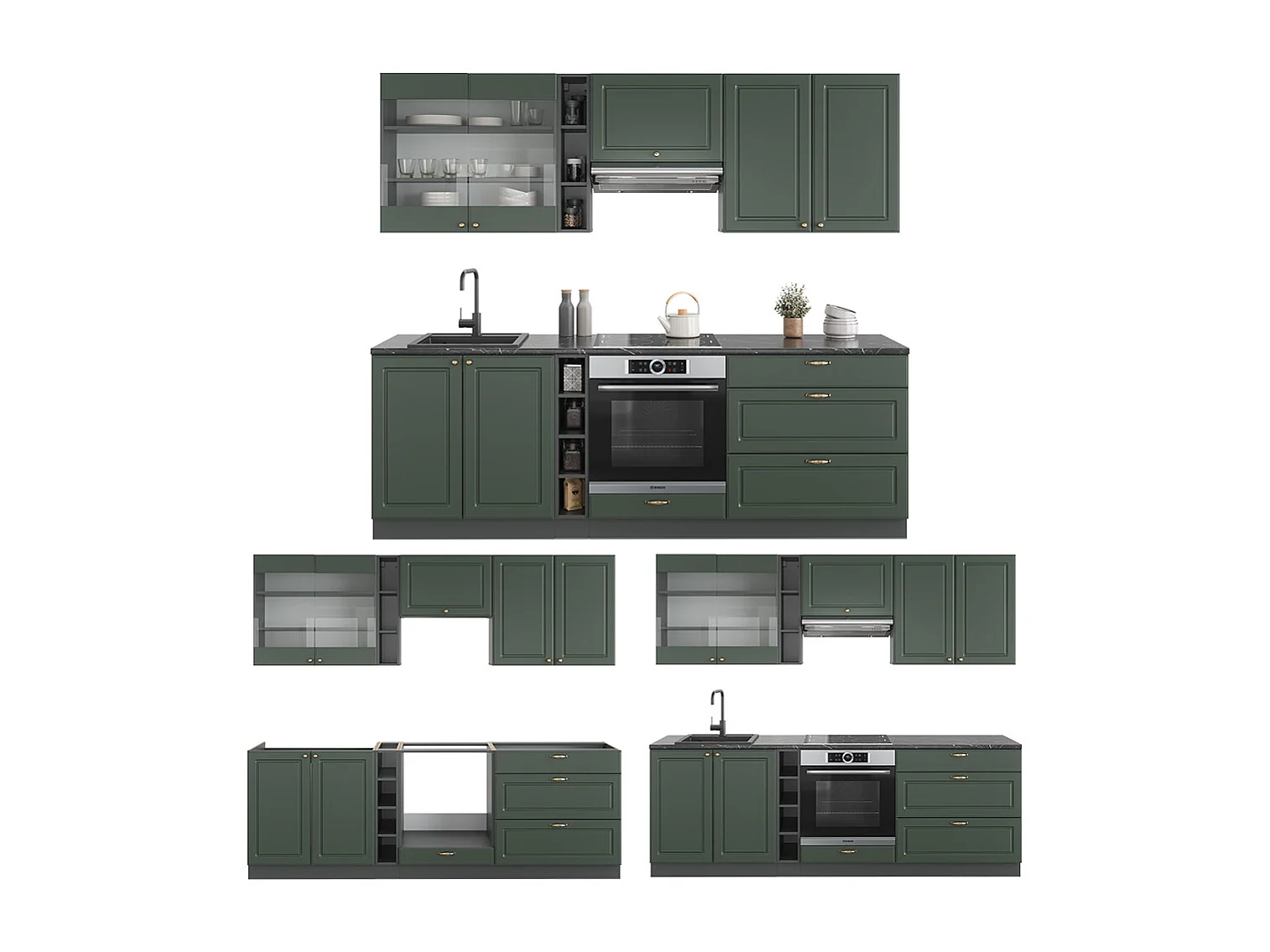 Cuisine vert et or campagne/anthracite 240x60x81.6 fame-line