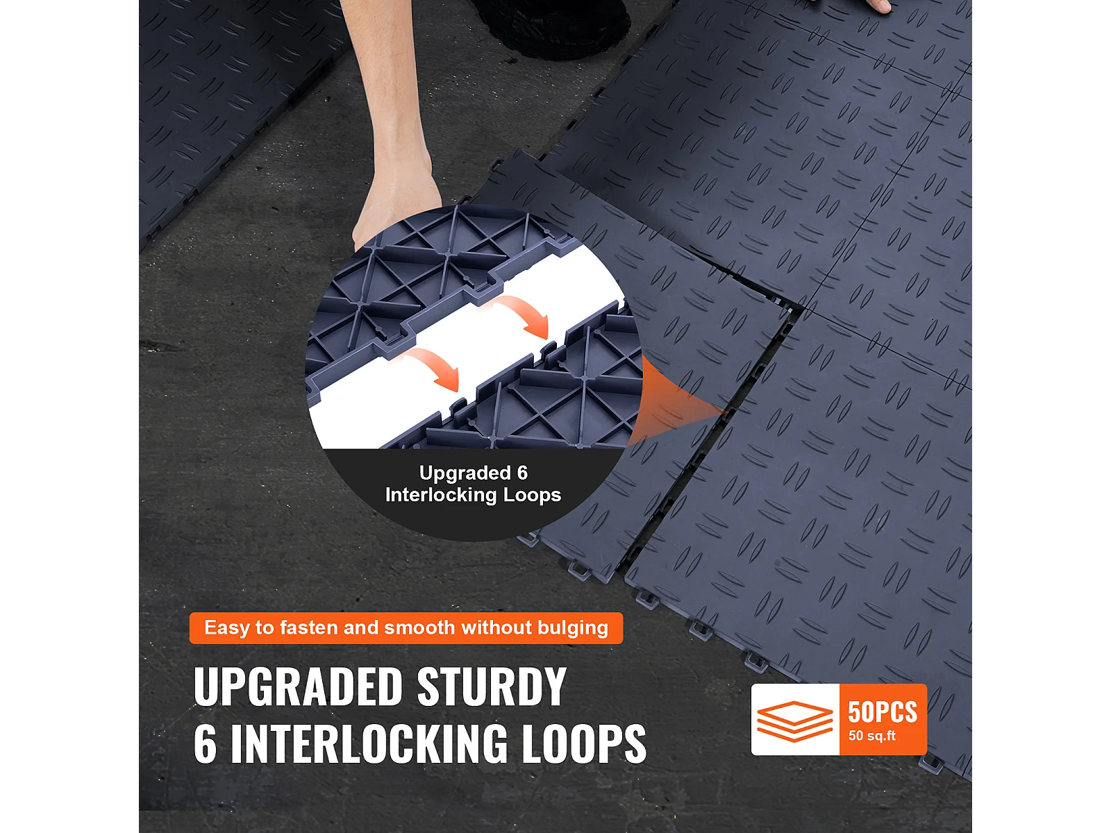 Dalles de Garage SucceBuy Lot de 50 Carreaux de Garage à Emboîter 30.48x30.48 CM Gris
