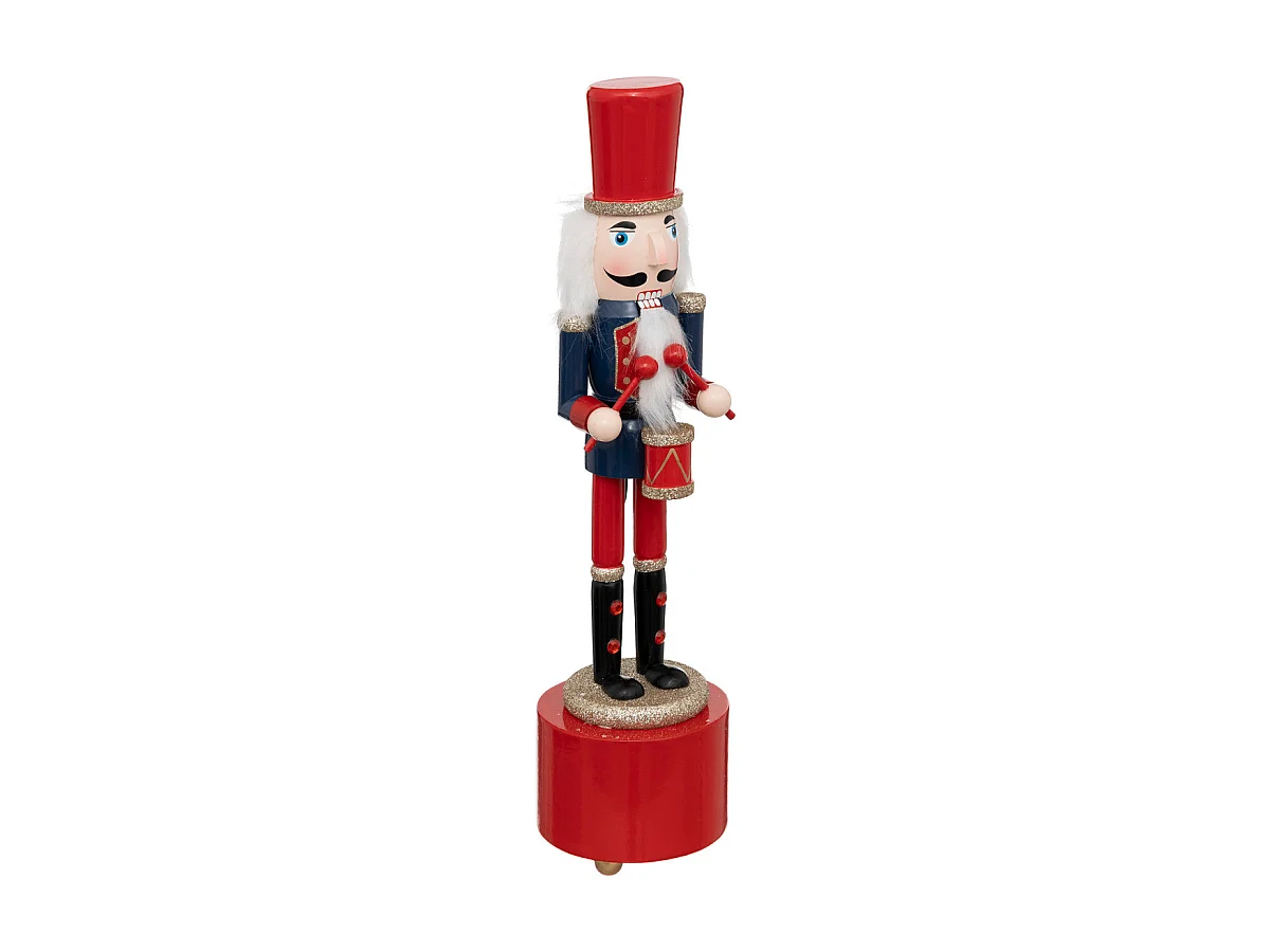 Déco de Noël Casse-Noisette musical Rouge et Bleu en Bois H 31.5 cm