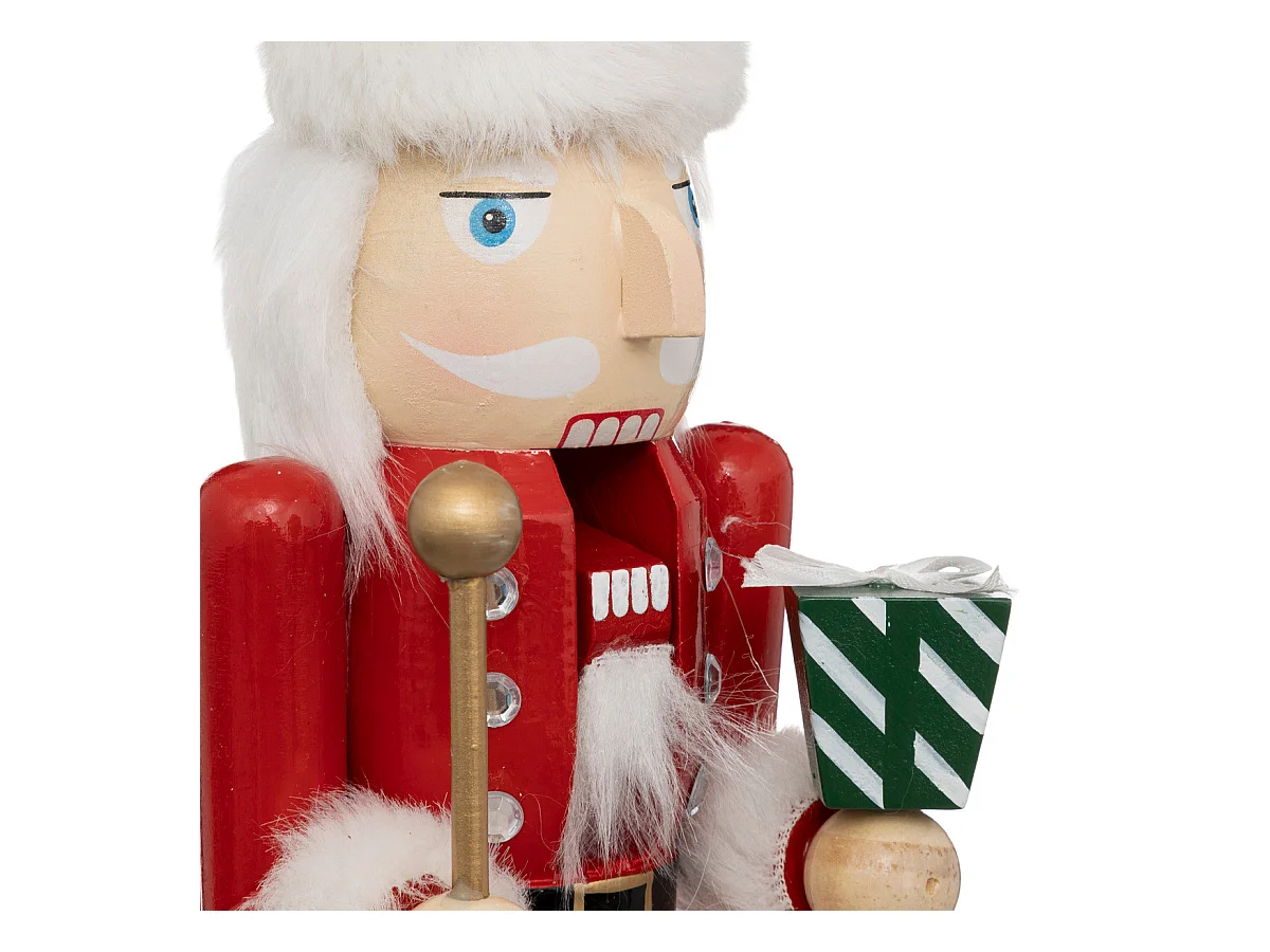 Déco de Noël Casse-Noisette Rouge et Blanc en Bois H 38 cm