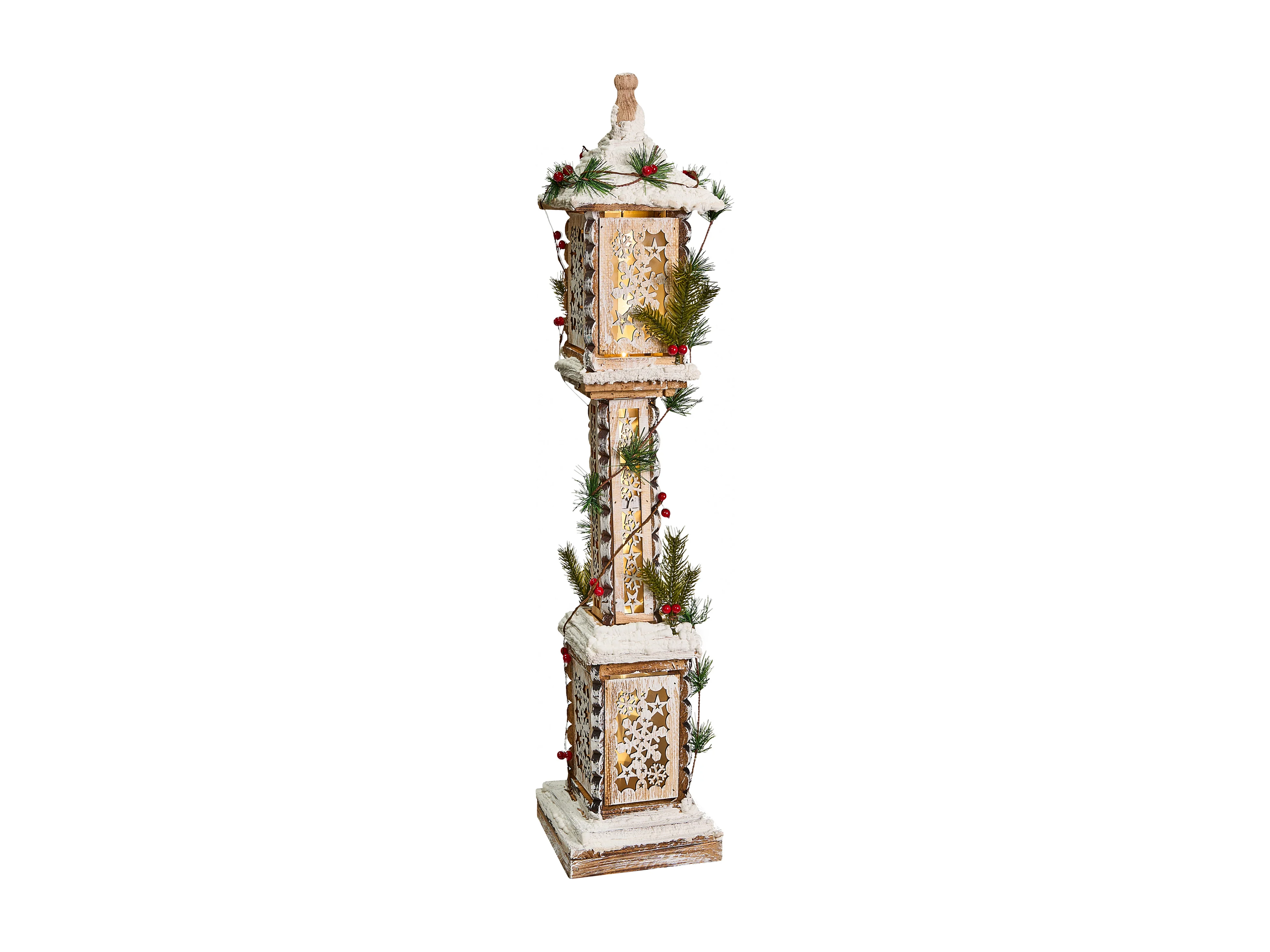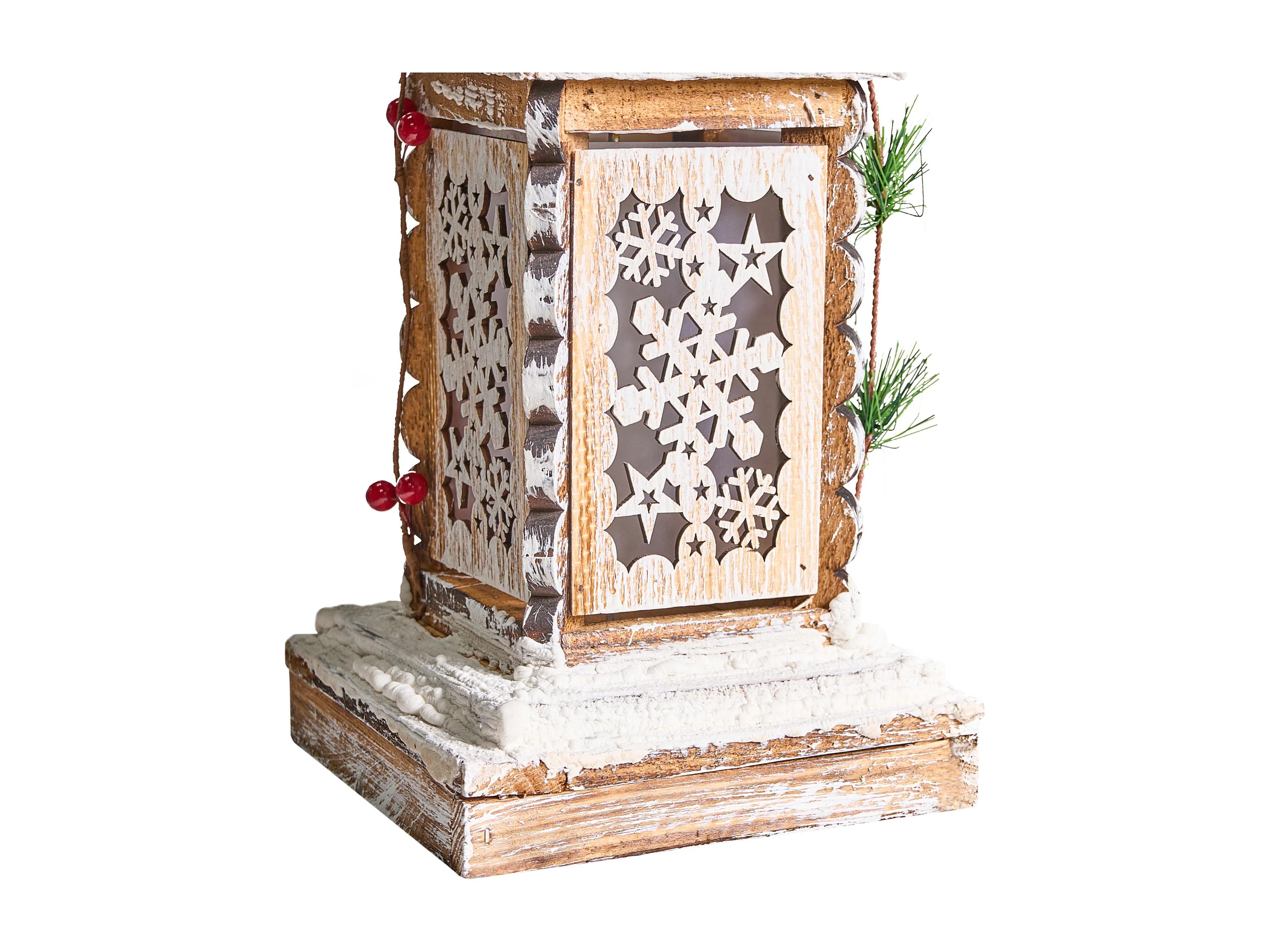 Lanterne LED SYVANSI Motif de Noël 46 cm Marron clair