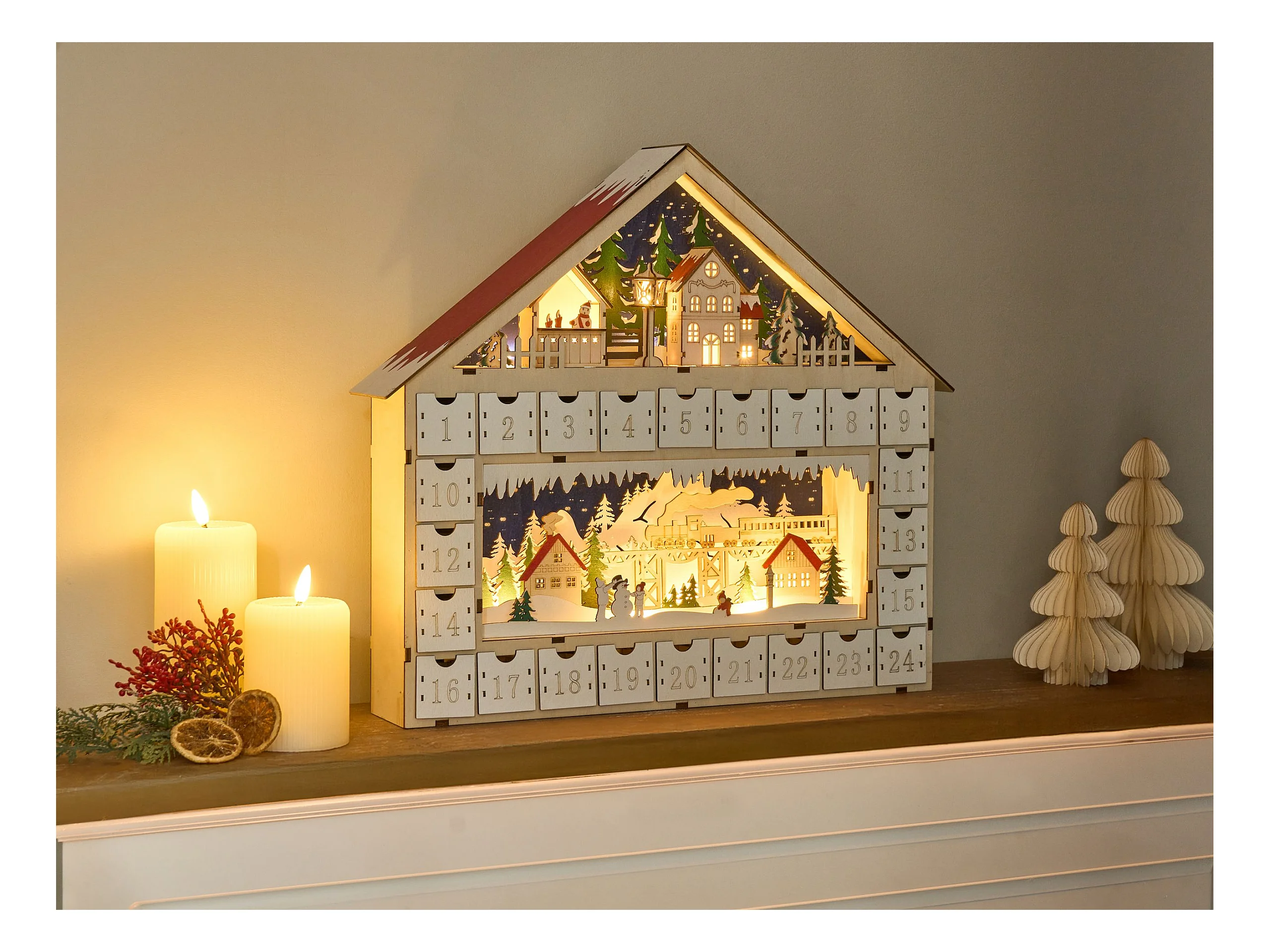 Décoration de Noël LED HELIN Calendrier de l'Avent 33 cm Marron clair