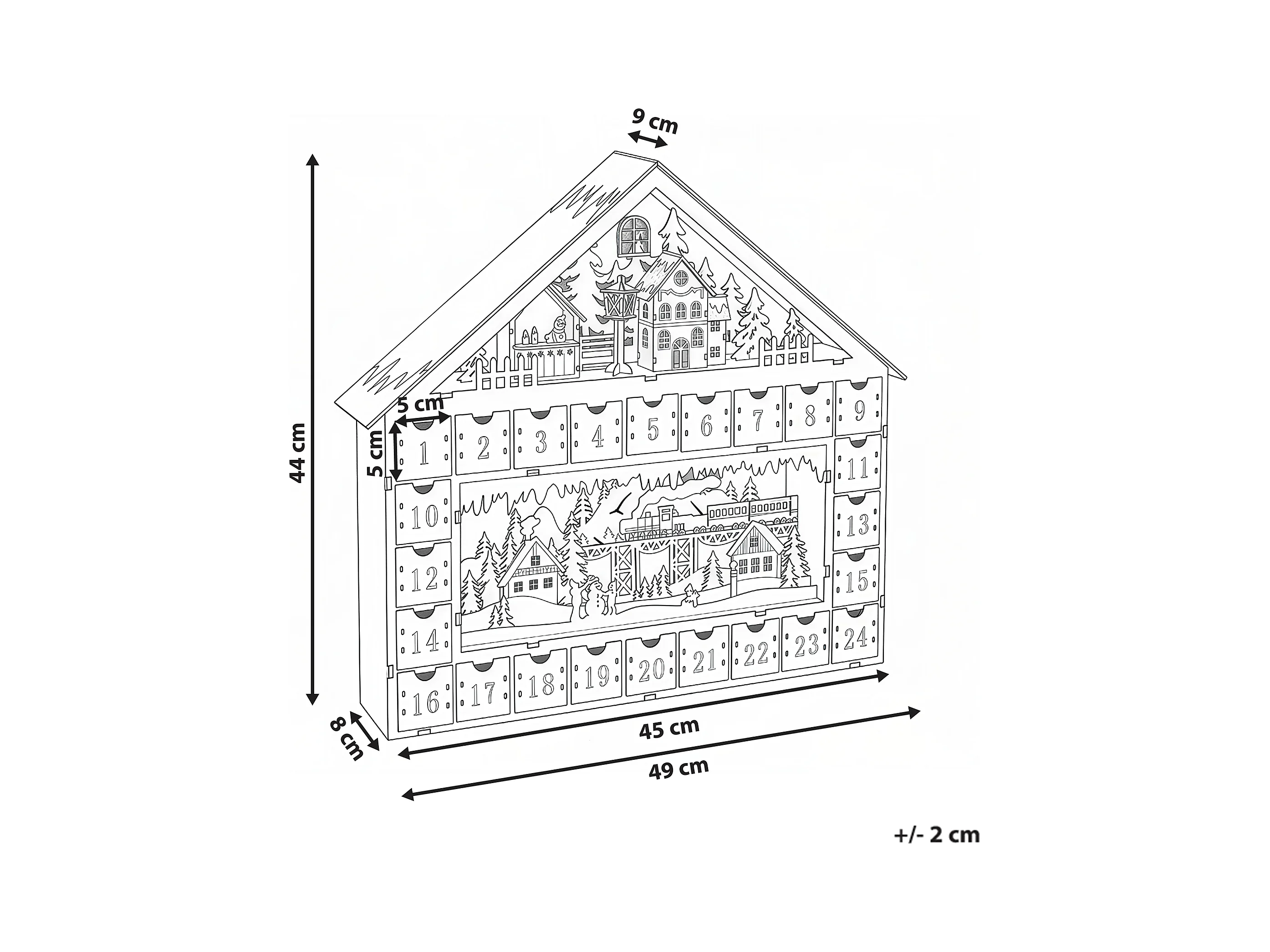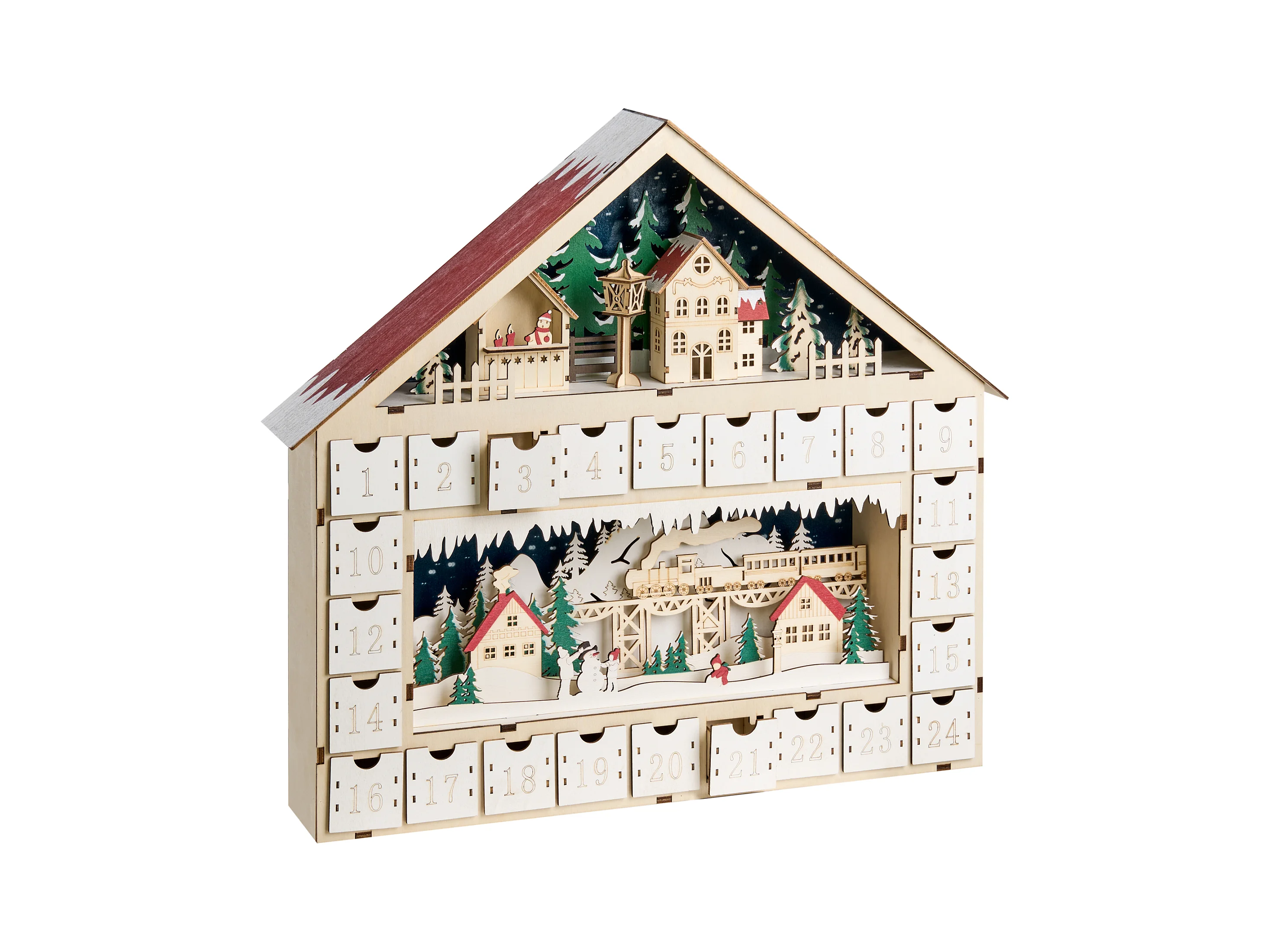 Décoration de Noël LED NISSER Calendrier de l'Avent 44 cm Marron clair