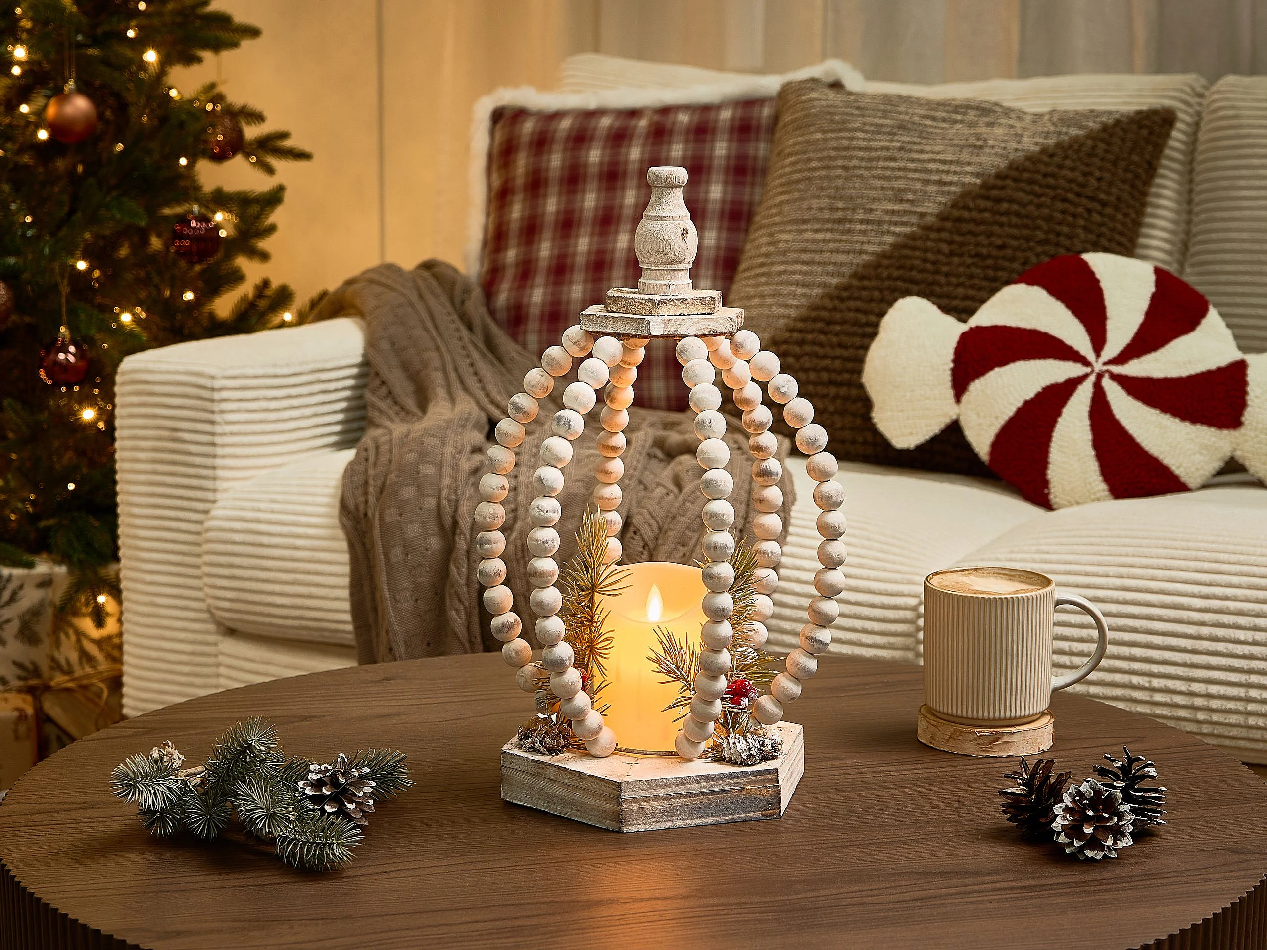 Lanterne LED SYVANSI Motif de Noël 46 cm Marron clair