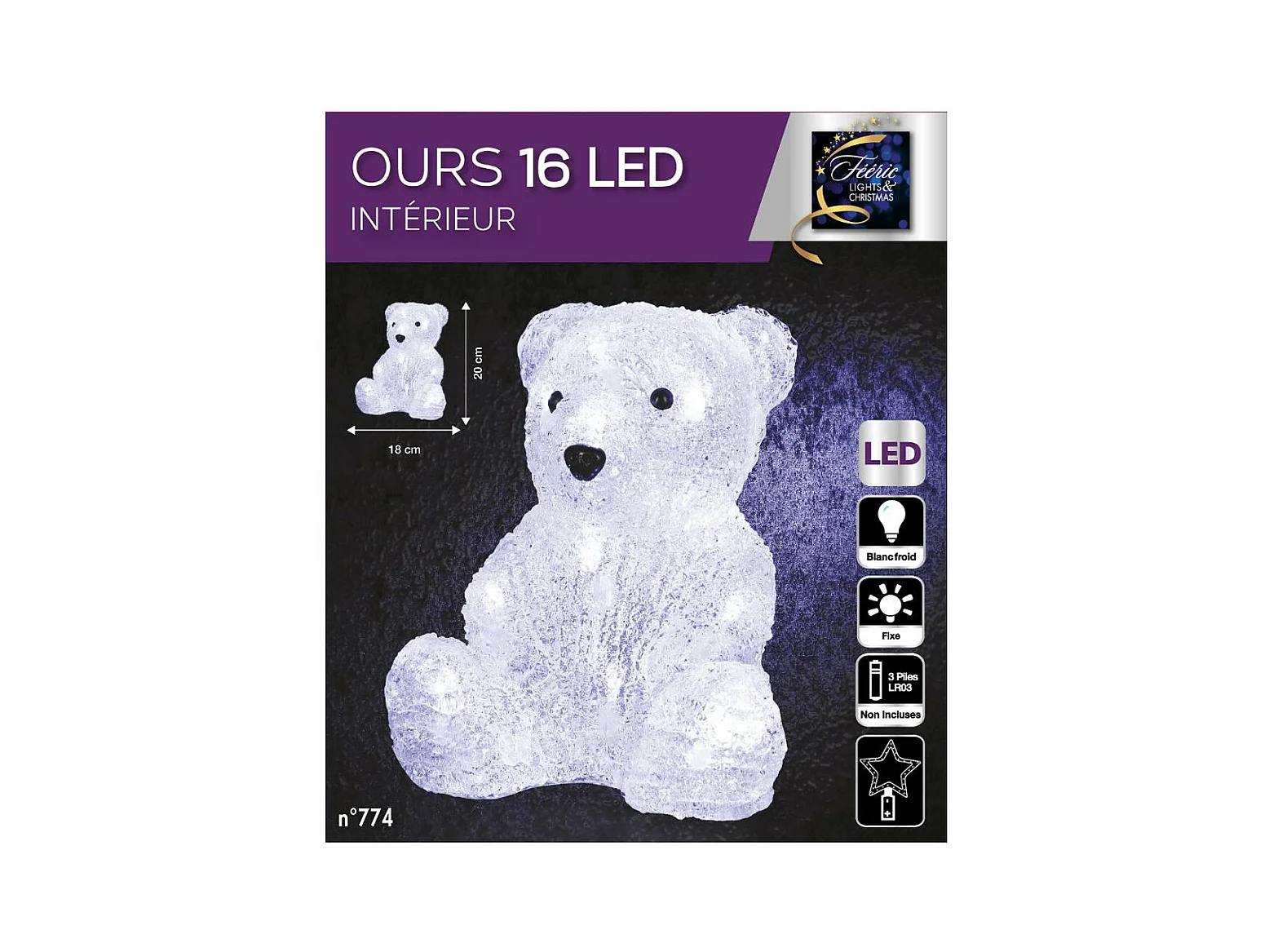 Décoration lumineuse Ours assis 16 LED Blanc froid H 20 cm