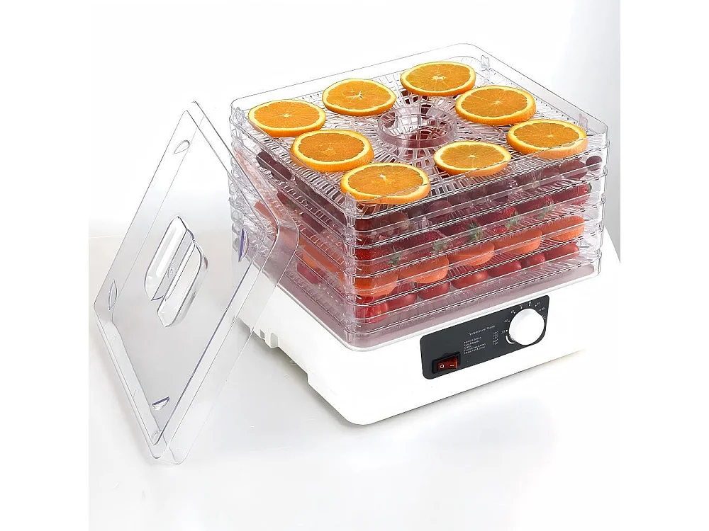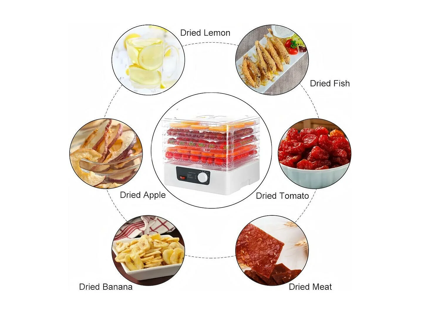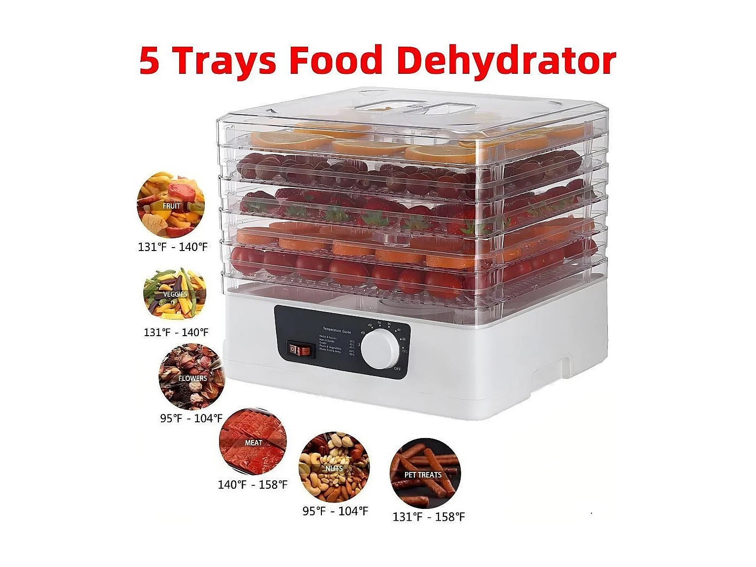 Déshydrateur à aliments 5 plateaux, 30-70°C, séchoir alimentaire 350 W, pour sécher toutes sortes de légumes, fruits - 32x32x26.5 cm