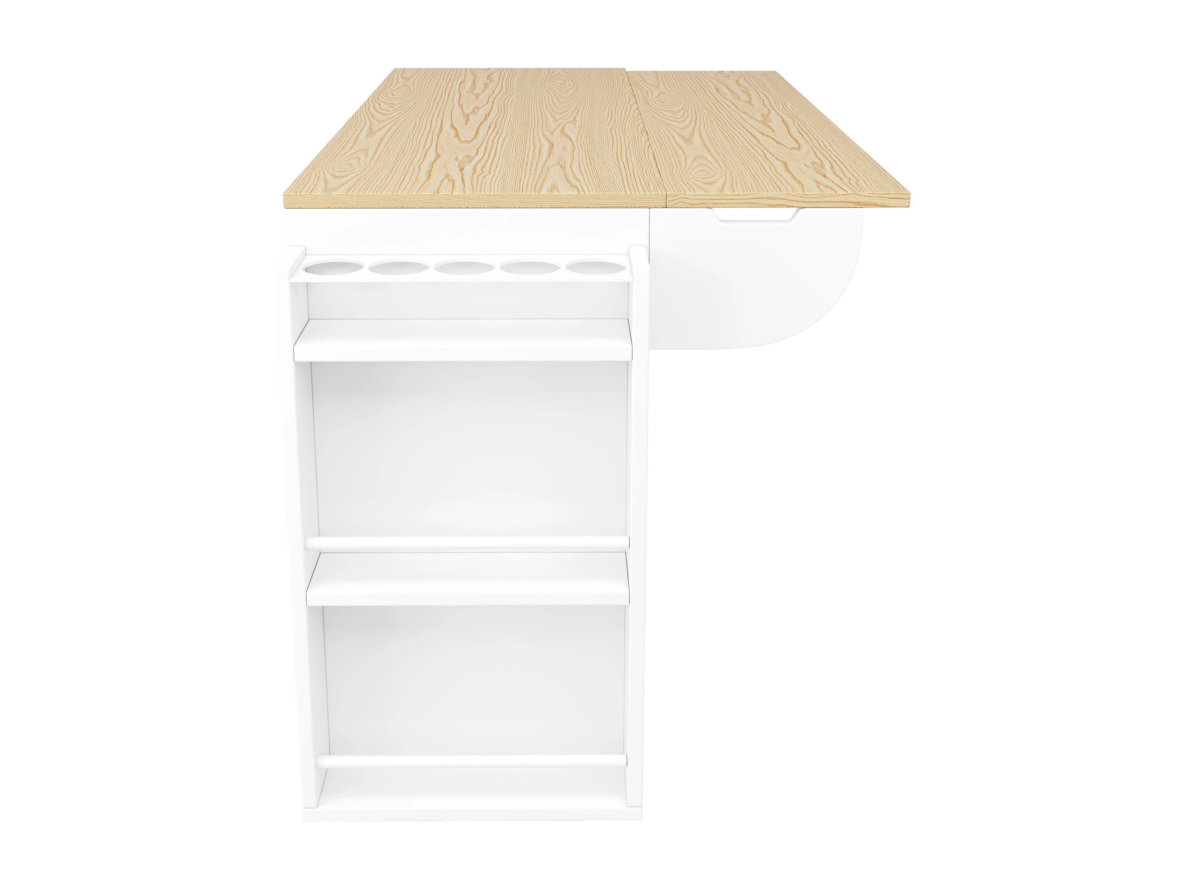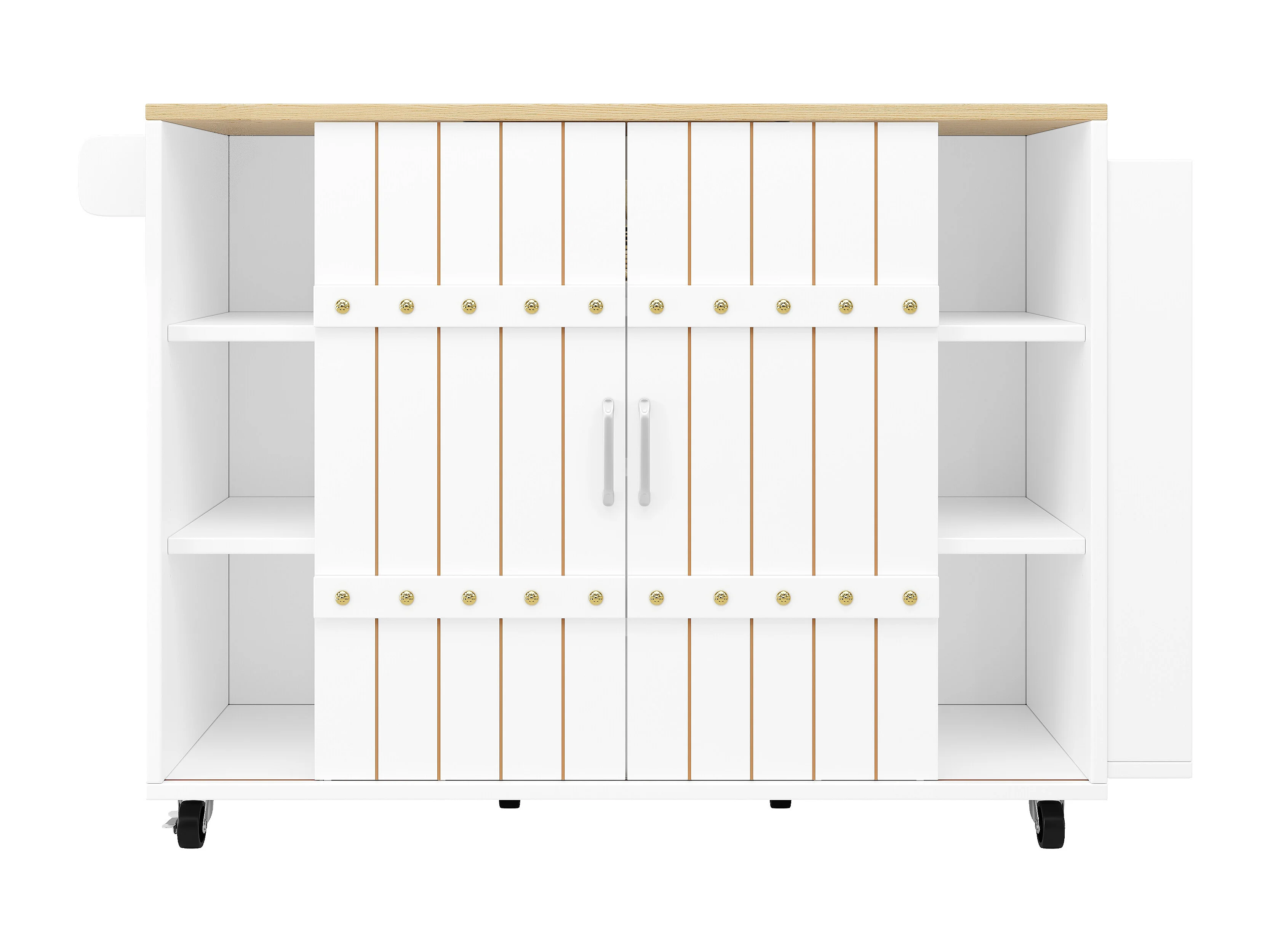Îlot de cuisine 110x42x90 cm, plateau rabattable, 3 tiroirs, portes coulissantes, MDF blanc