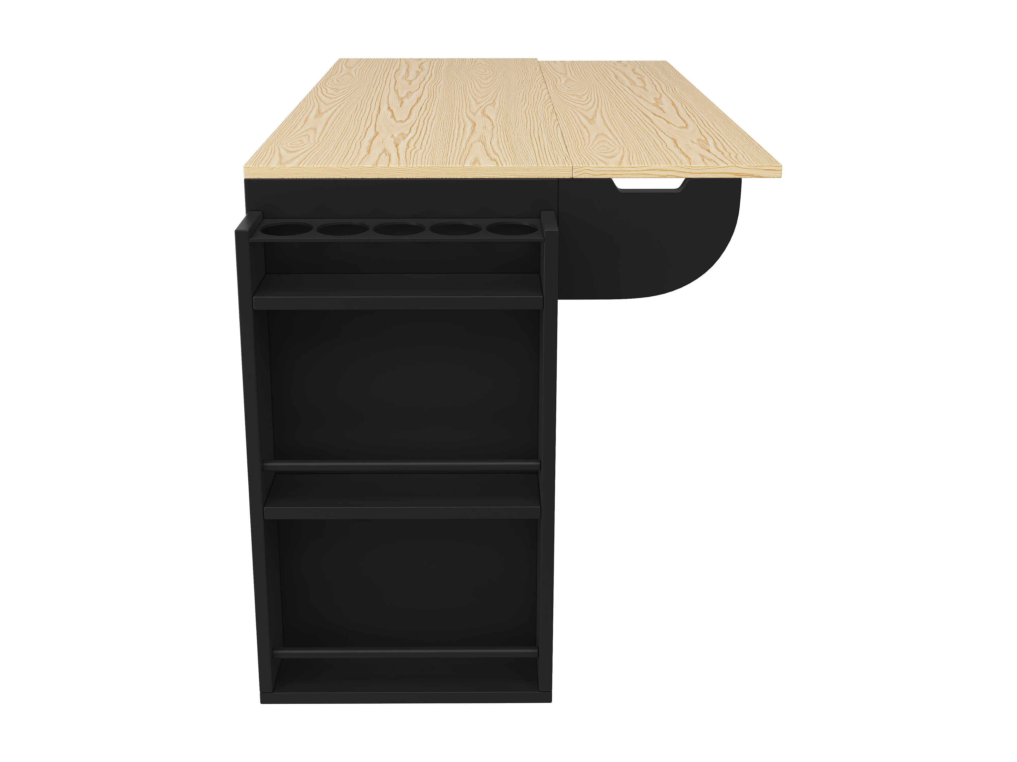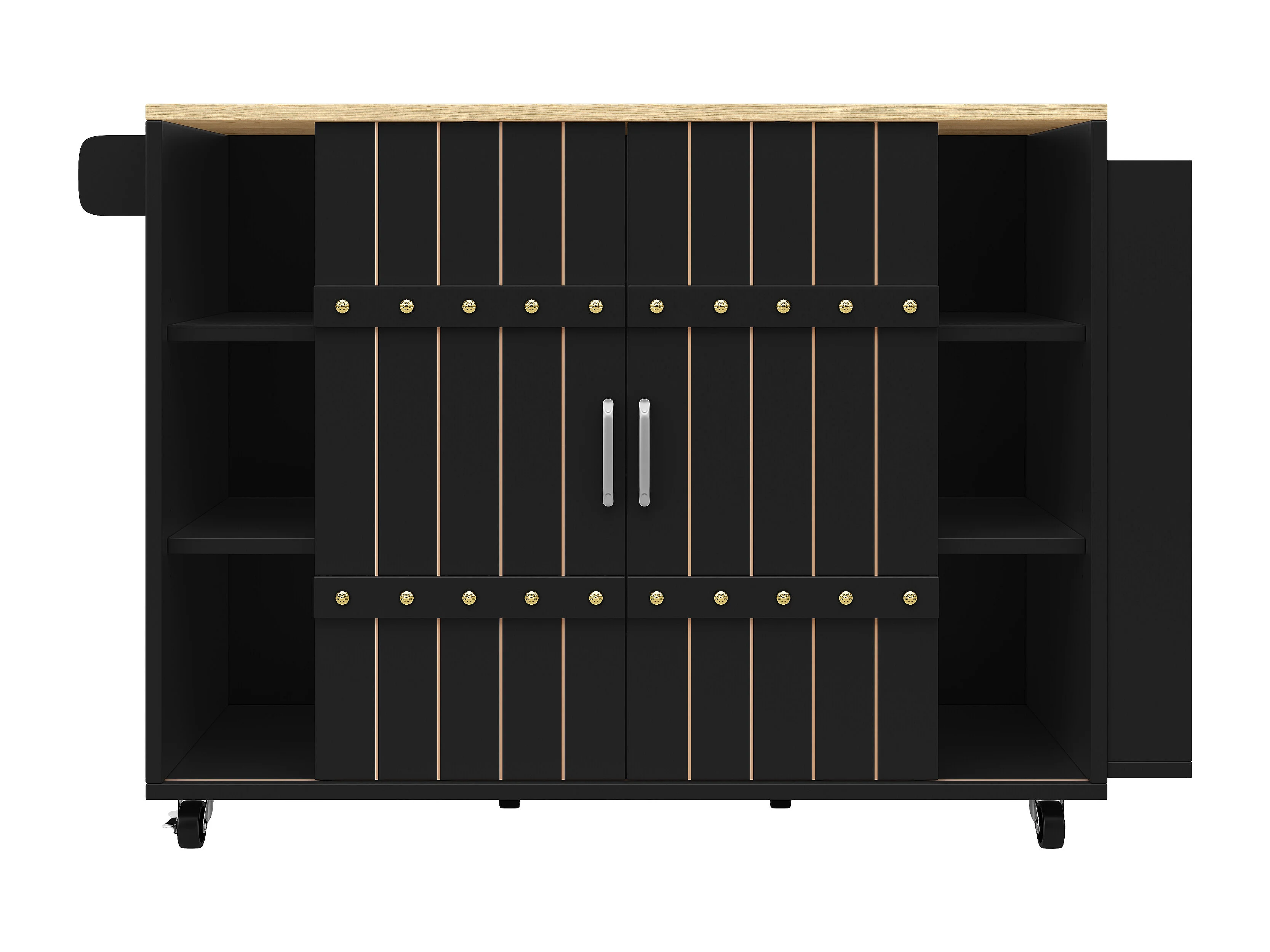Îlot de cuisine 110x42x90 cm, plateau rabattable, 3 tiroirs, portes coulissantes, MDF noir
