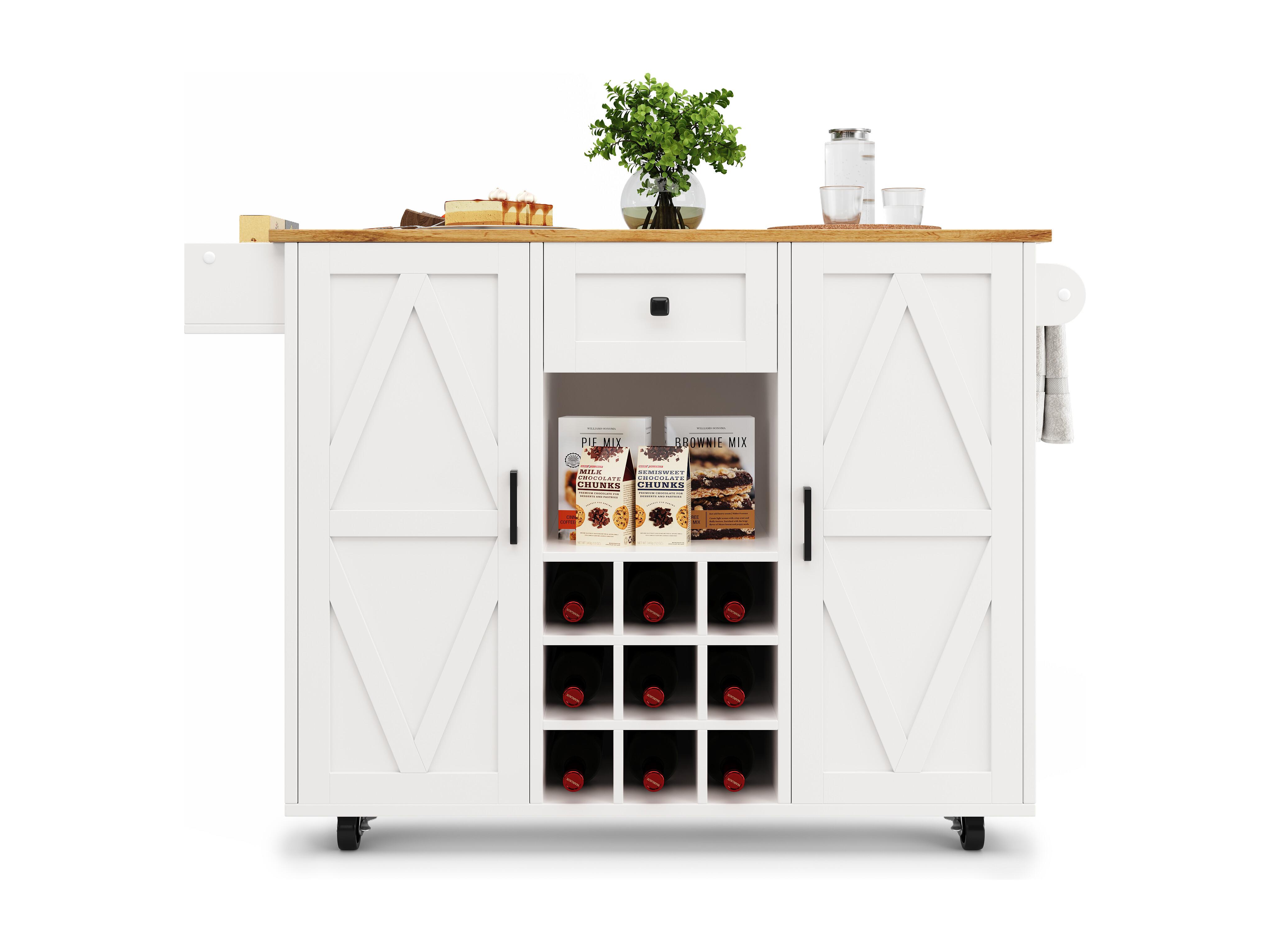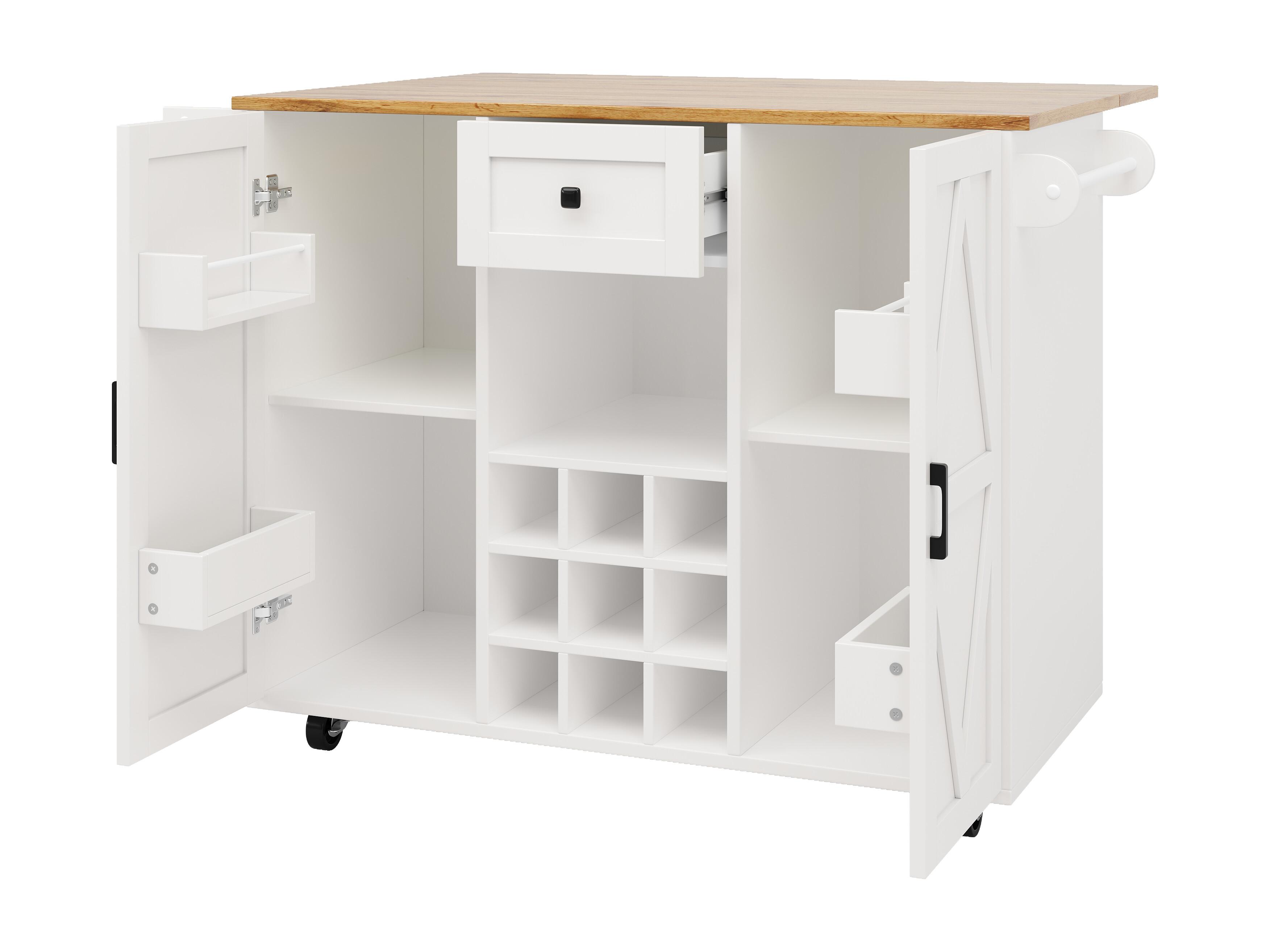 Desserte de cuisine (118×40×95.6 cm) moderne avec rangements, plateau extensible et étagères à snacks – naturel+blanc