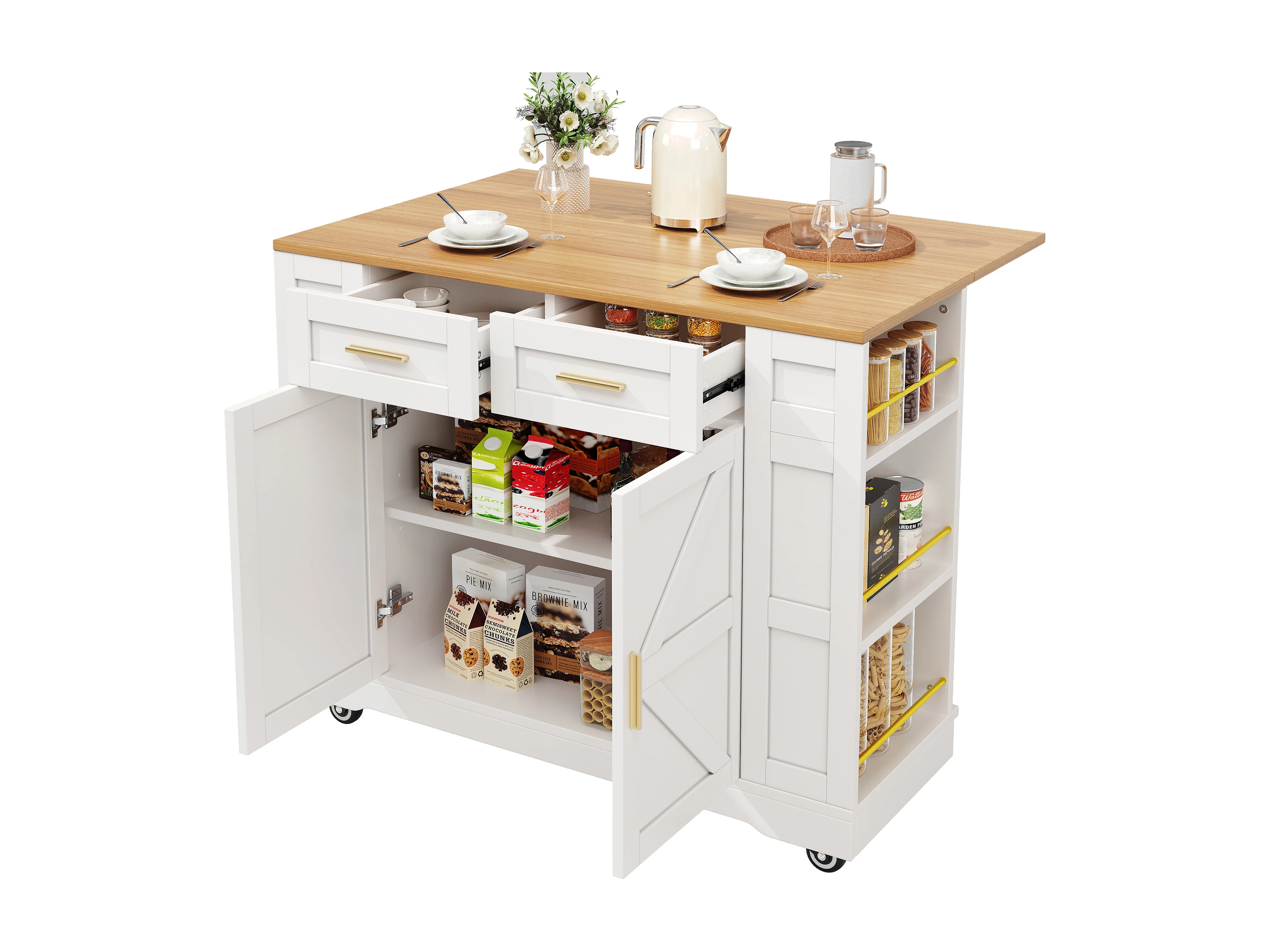 Desserte de cuisine 120x(40-65)x90 cm 2 portes et 2 tiroirs Îlot de cuisine avec plateau extensible - blanc