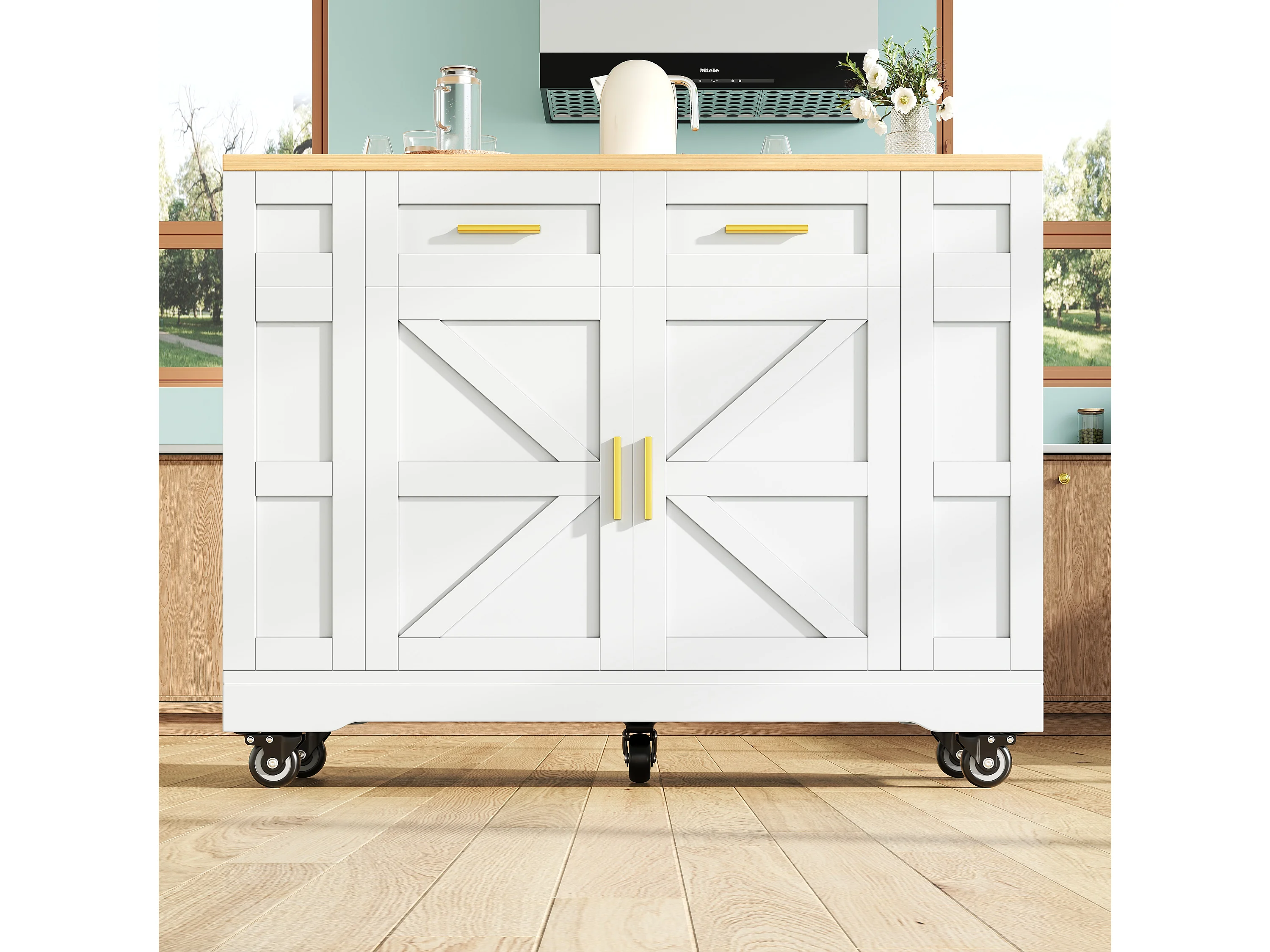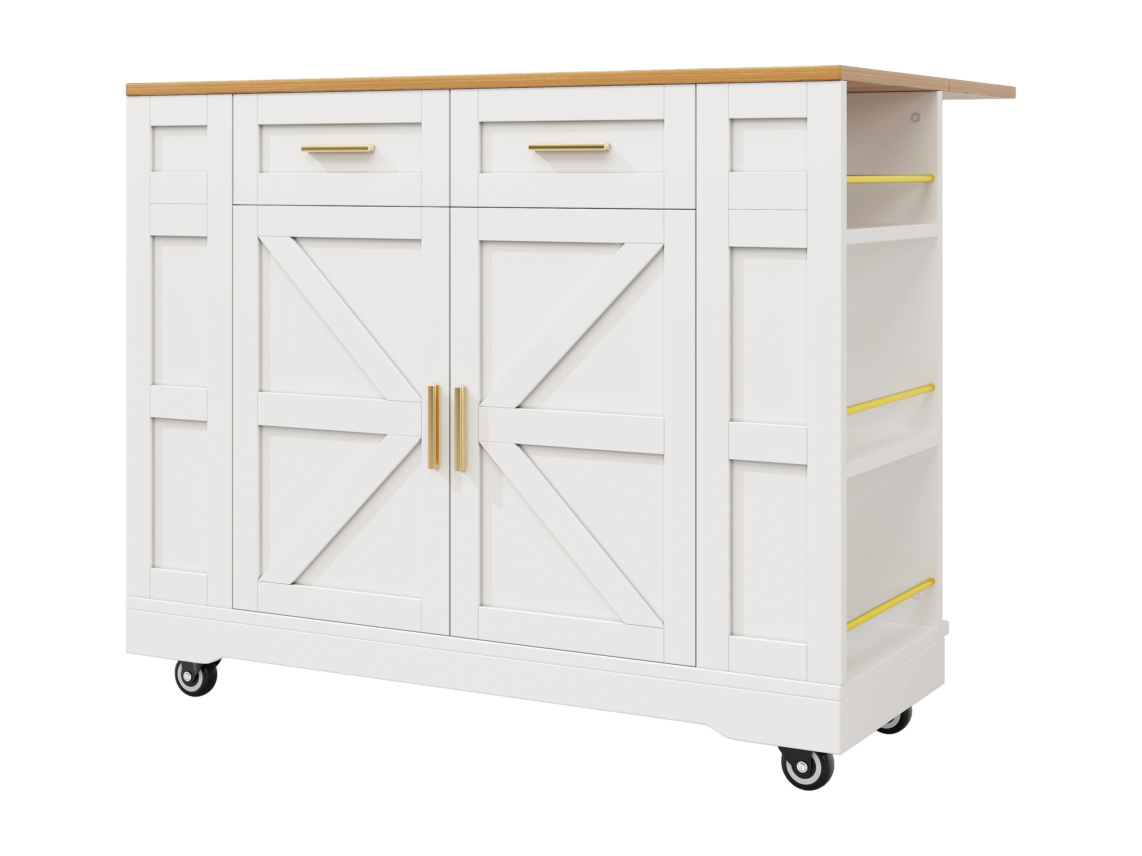 Îlot de cuisine 120x65x90 cm, plateau rabattable, 2 tiroirs et rangements, MDF blanc