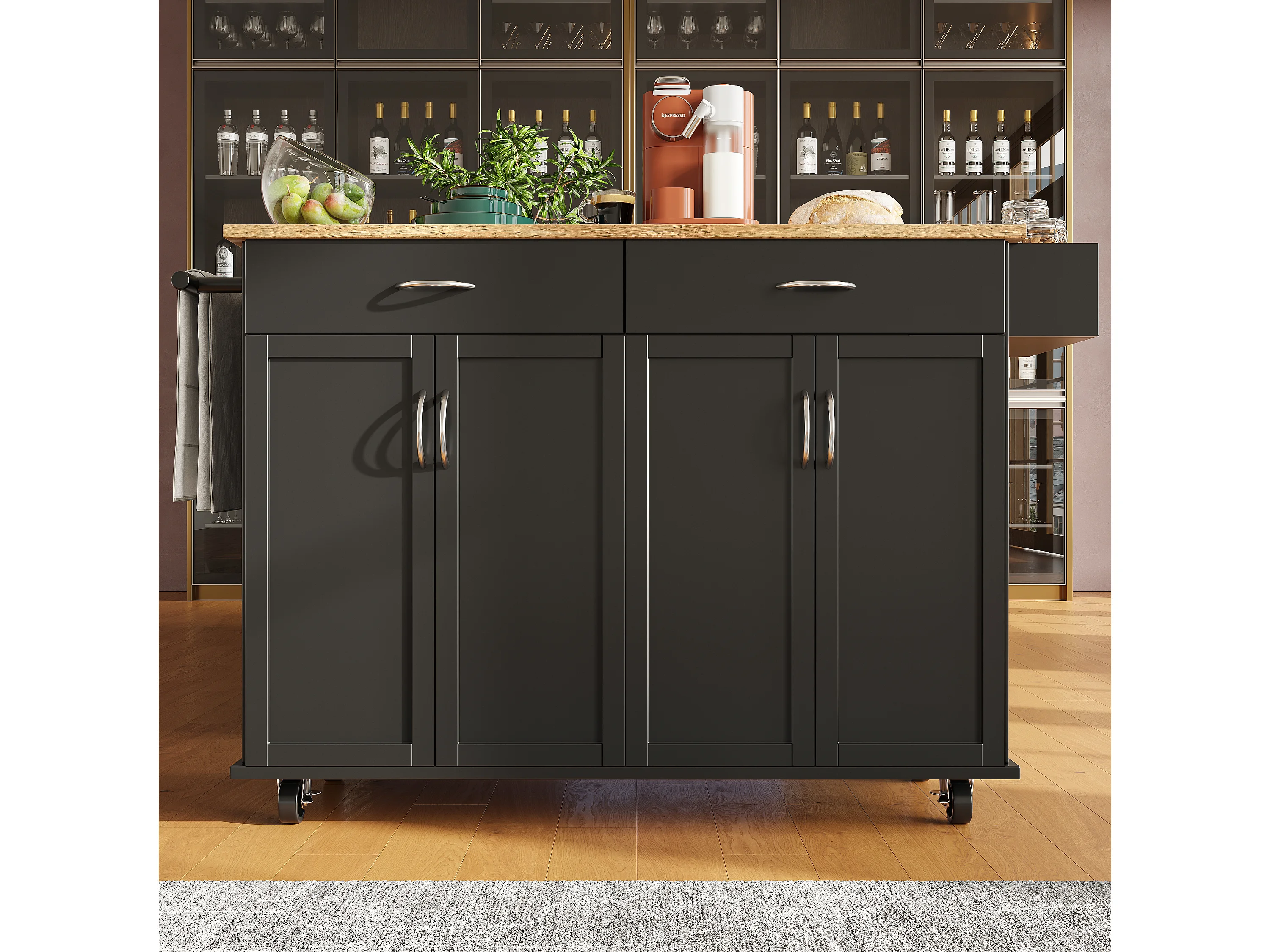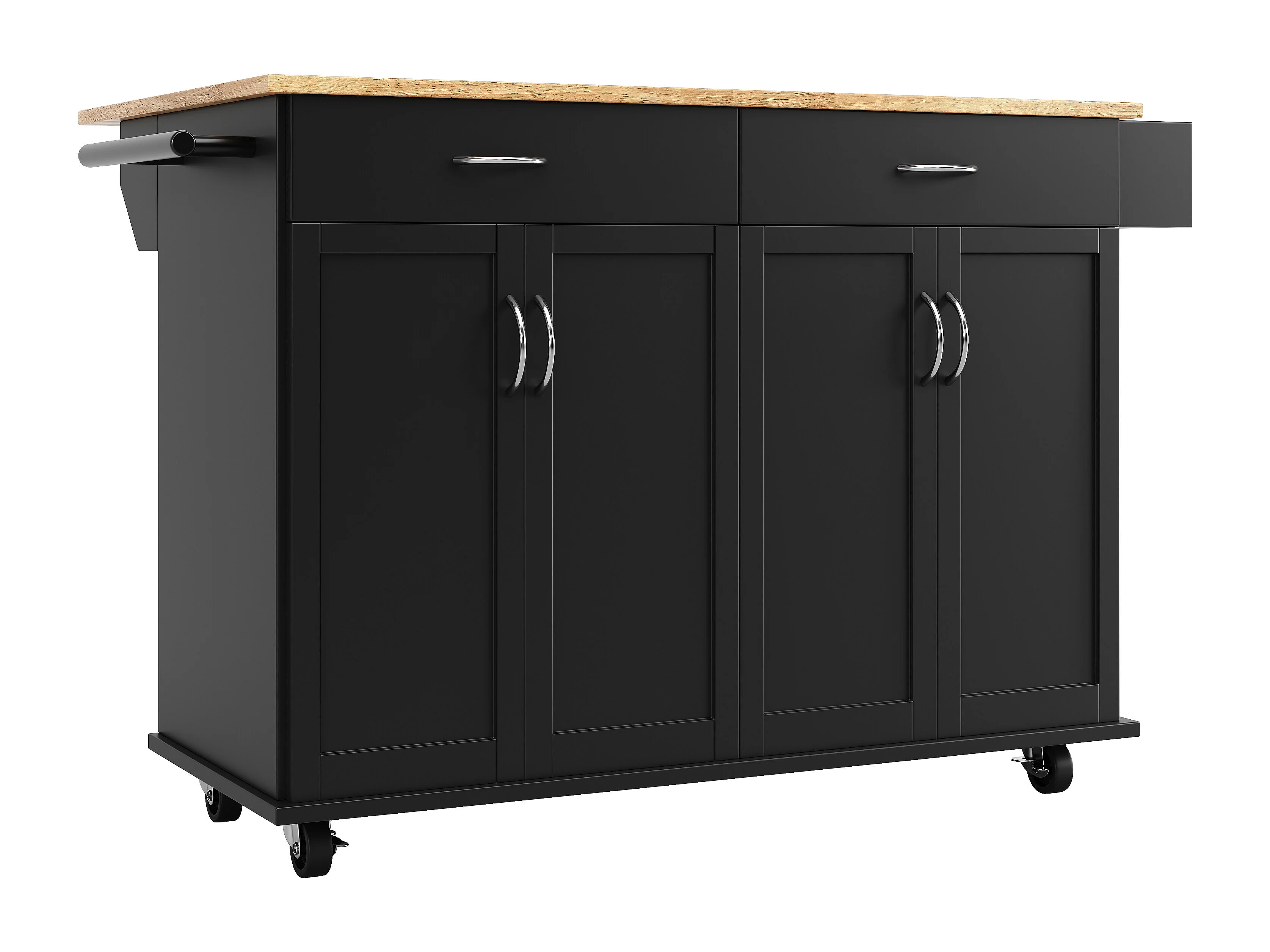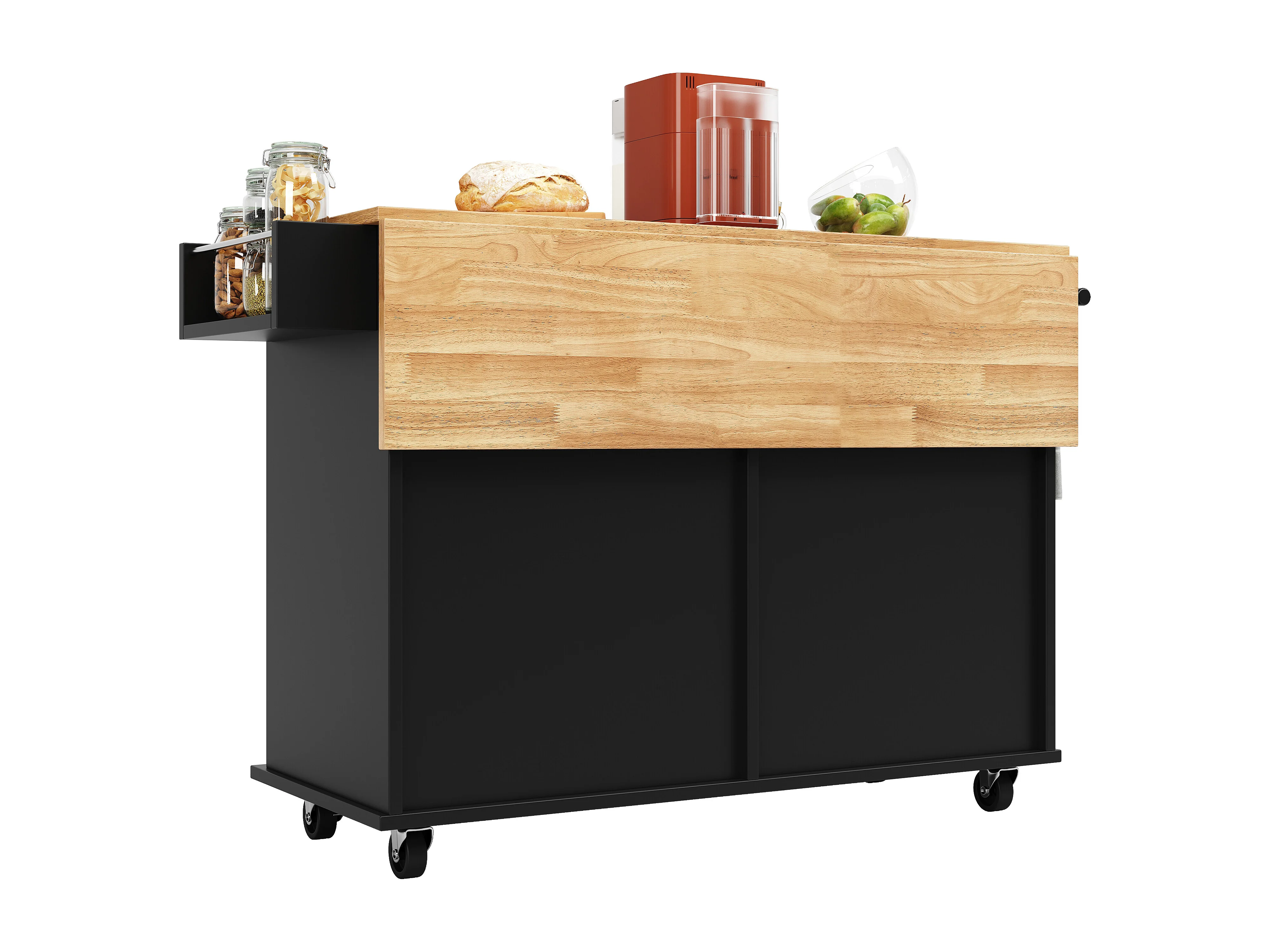 Desserte de cuisine 128x(50/78)x90.5 cm 4 portes et 2 tiroirs Îlot de cuisine avec plateau extensible - noir