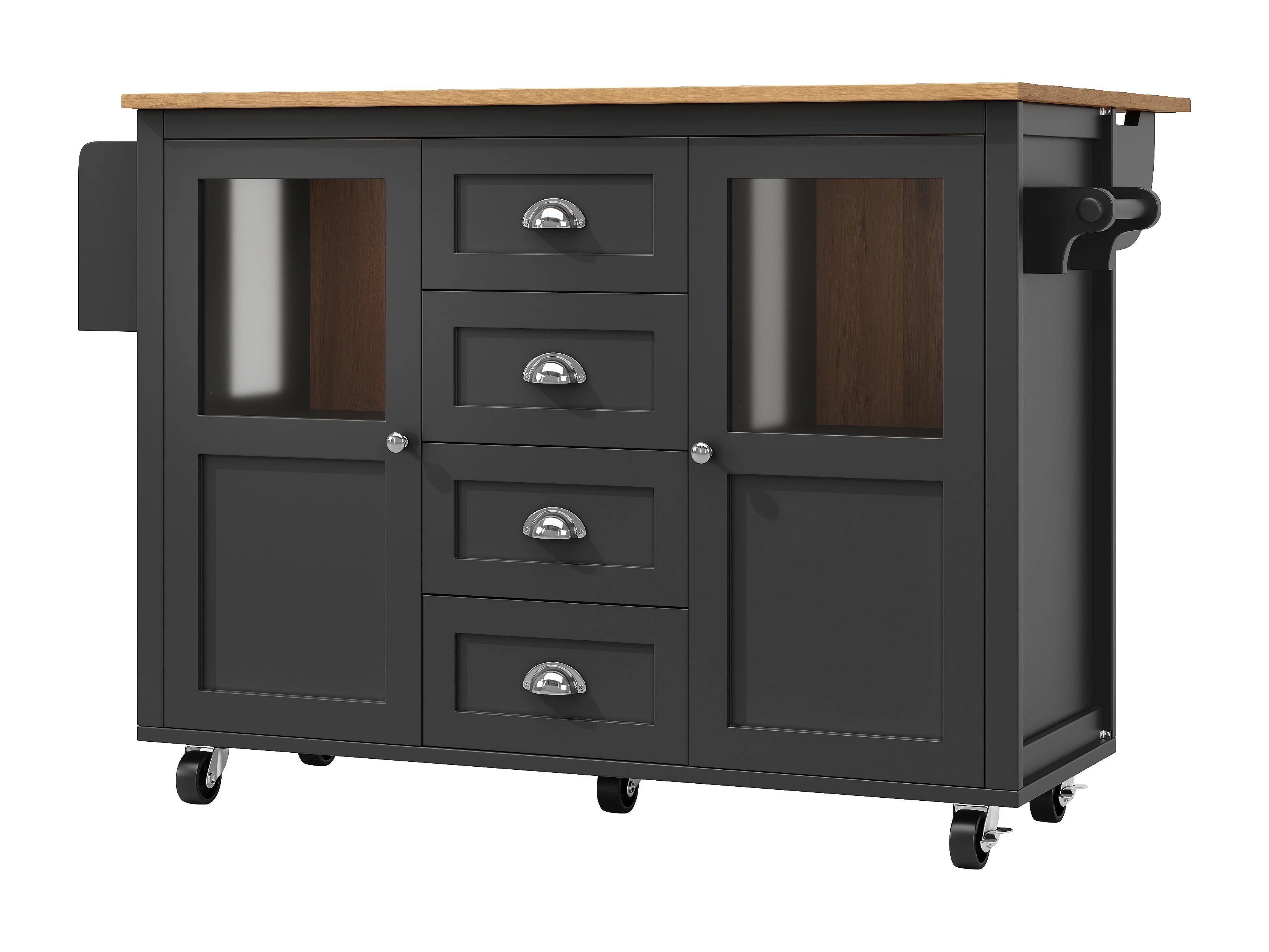 Desserte de cuisine 137.9x(40-73)x92.5 cm 2 portes et 4 tiroirs Îlot de cuisine avec plateau extensible - noir