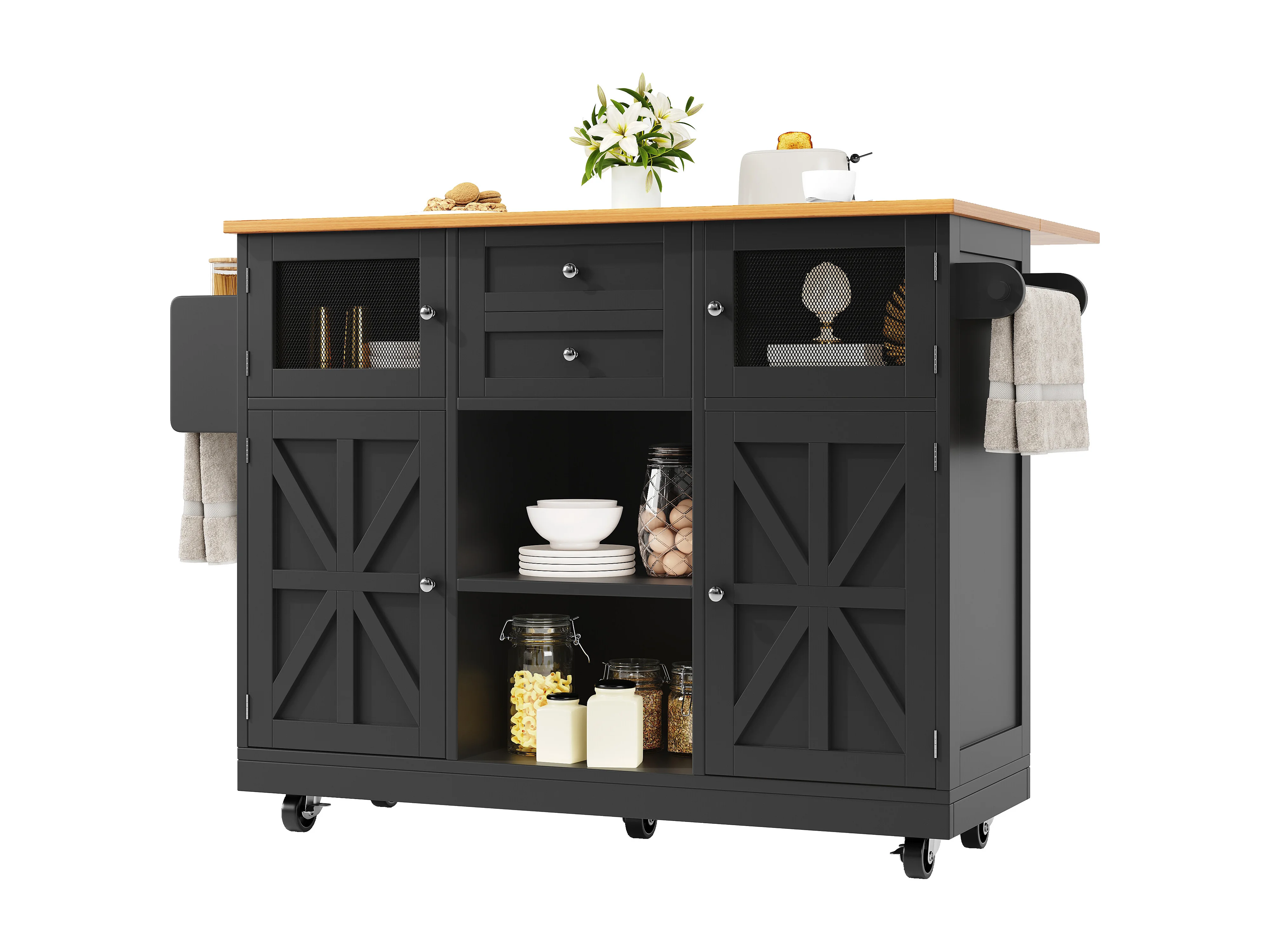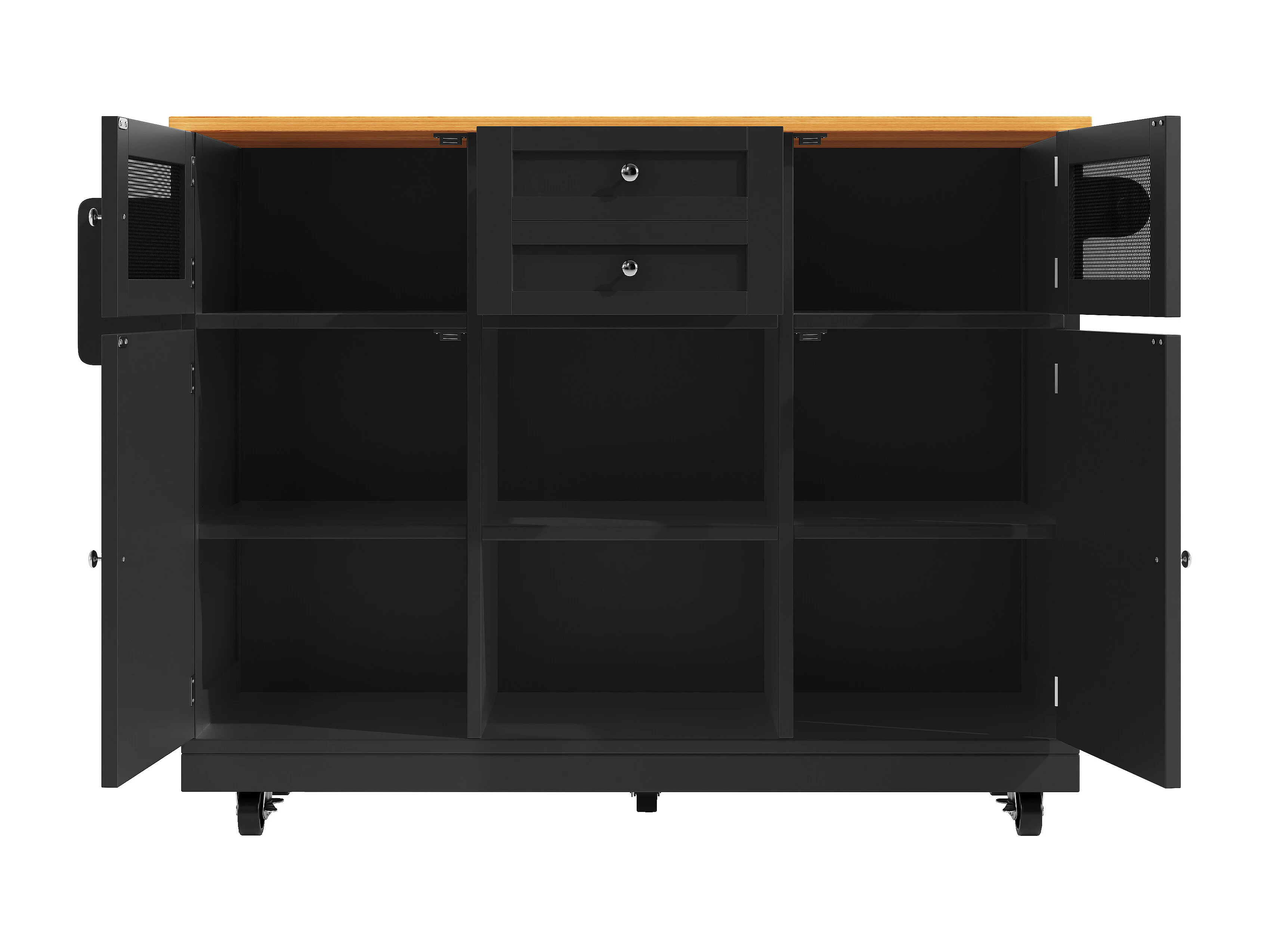 Desserte de cuisine 140x40x93.5 cm, plateau rabattable, 2 tiroirs, roulettes, MDF noir