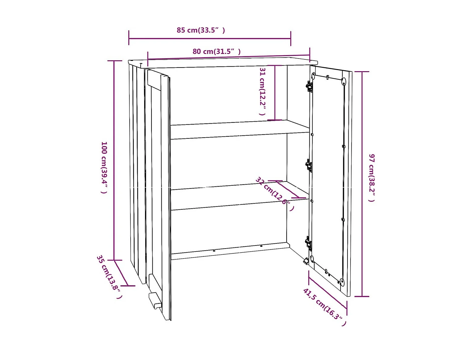 Dessus de buffet HAMAR Gris foncé 85x35x100 cm Bois de pin