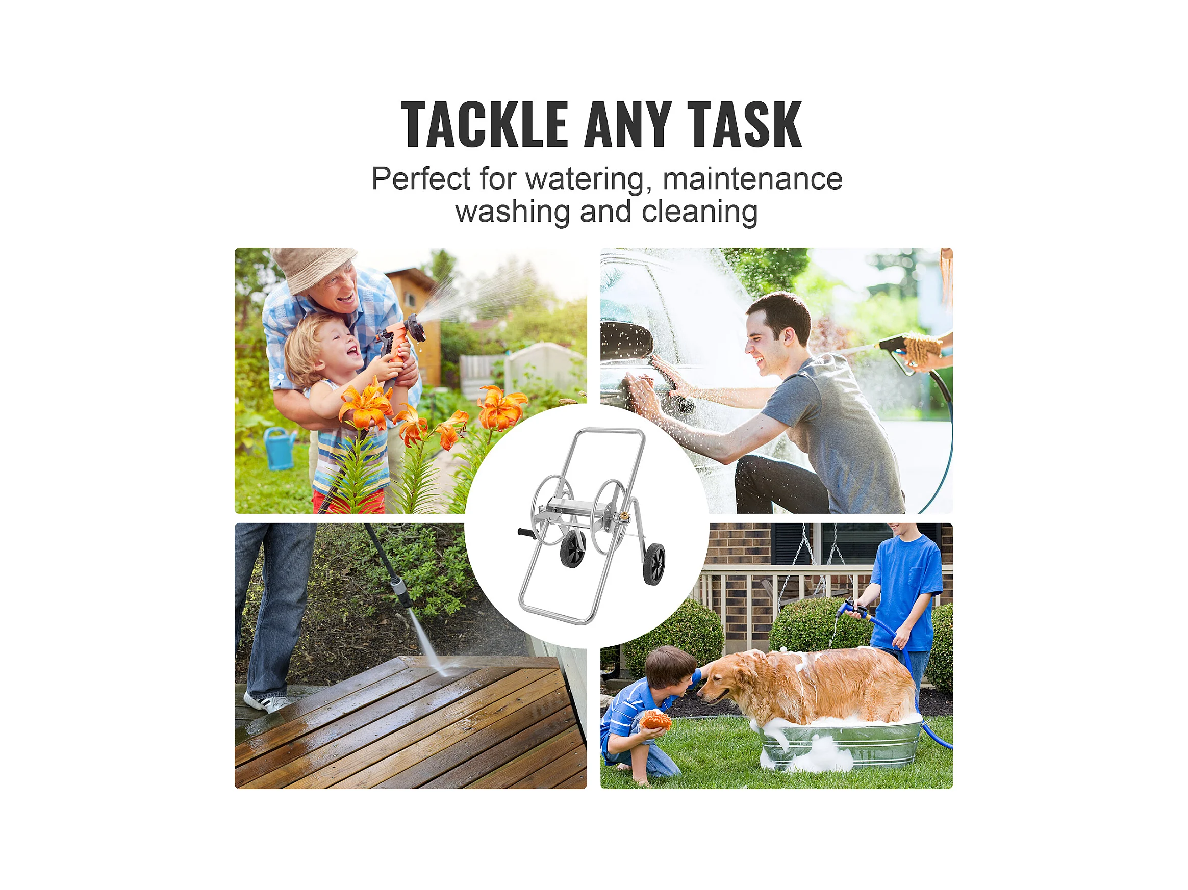 Dévidoir Chariot SucceBuy Chariot Enrouleur de Tuyau 53 m, Robuste pour Jardin avec Roues