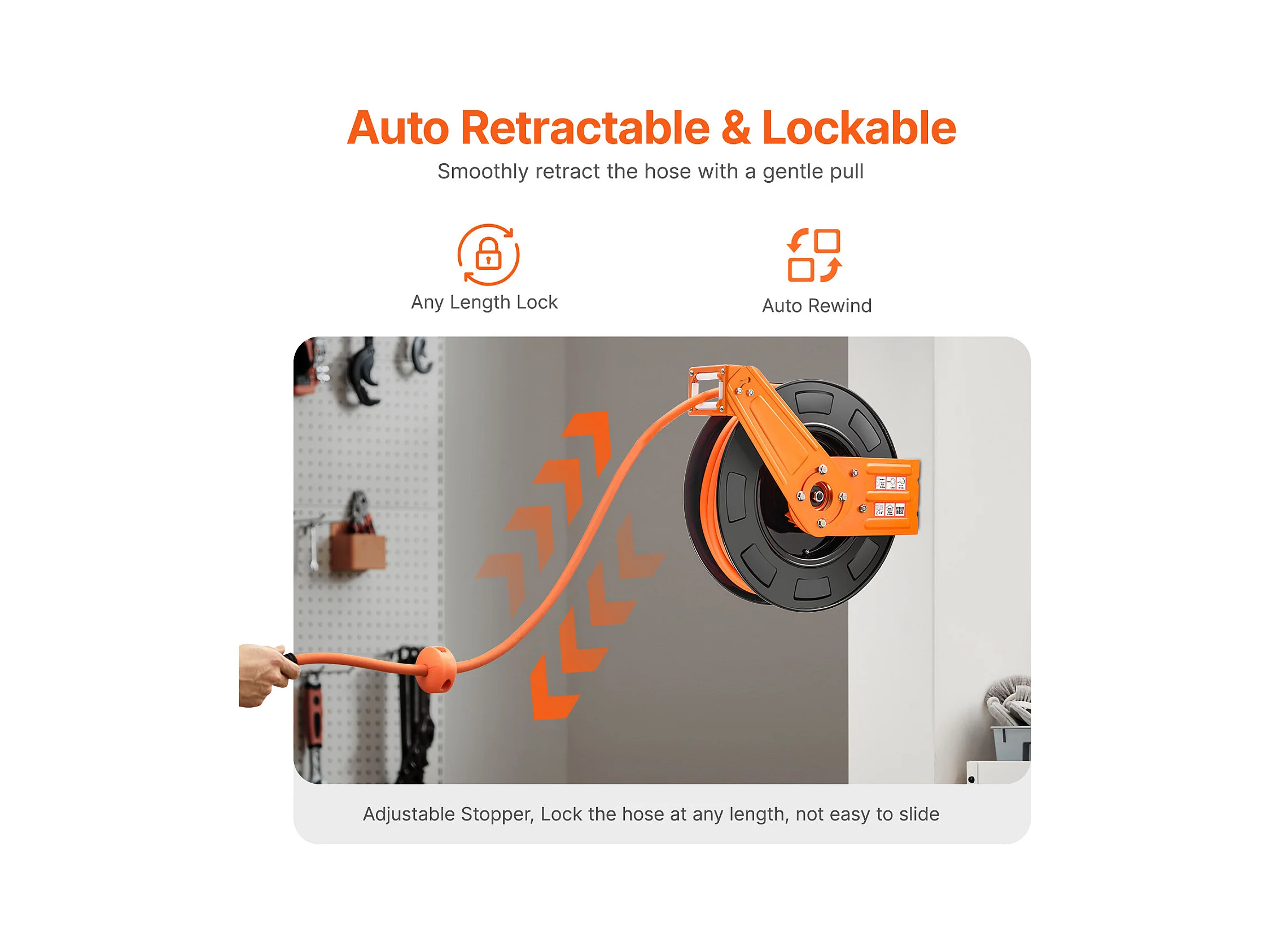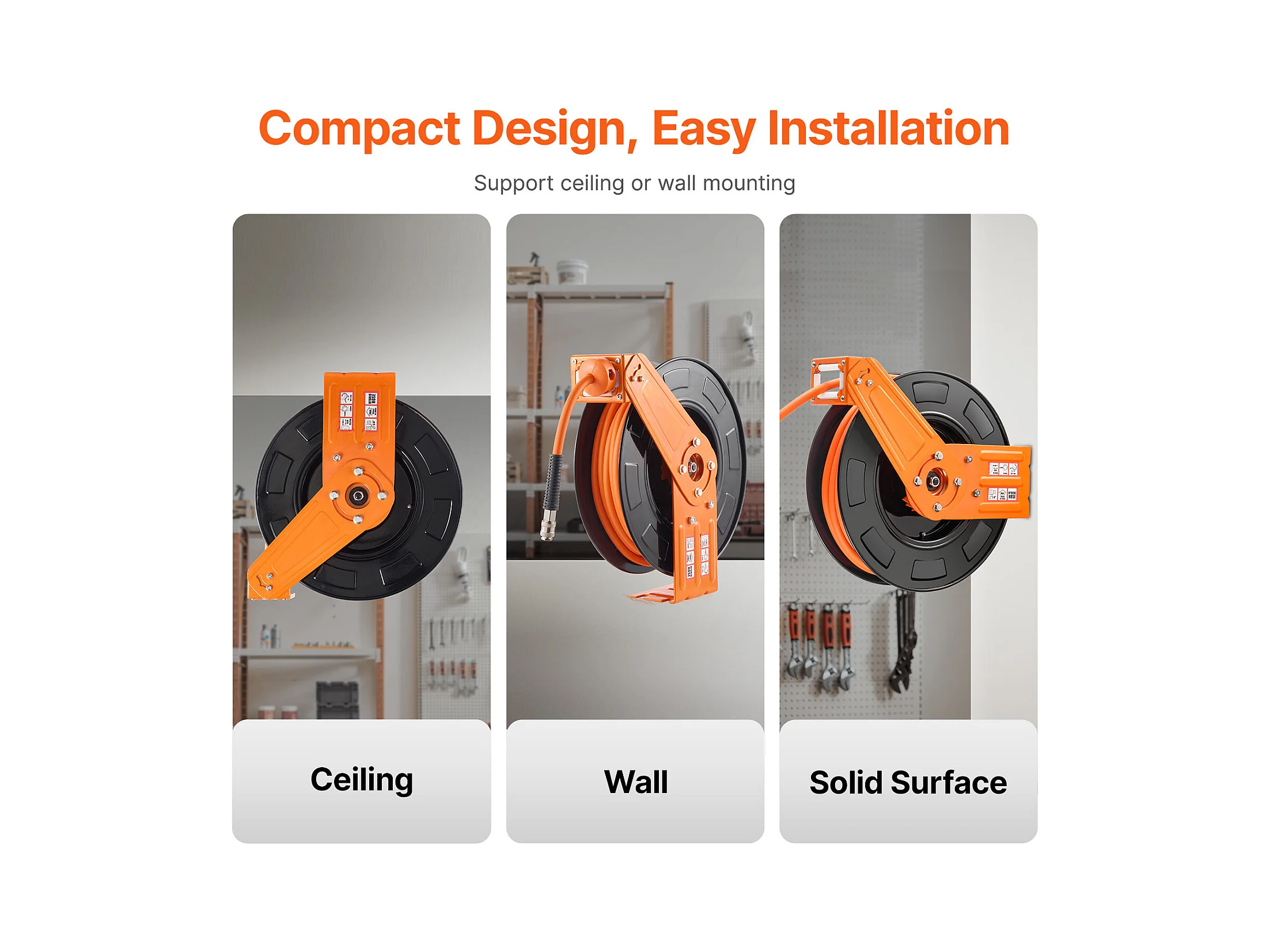 Dévidoir, SucceBuy Enrouleur de Tuyau d'Air 9,5 mm × 19,81 m 300 PSI Rétractable avec Entrée de 1,5 m