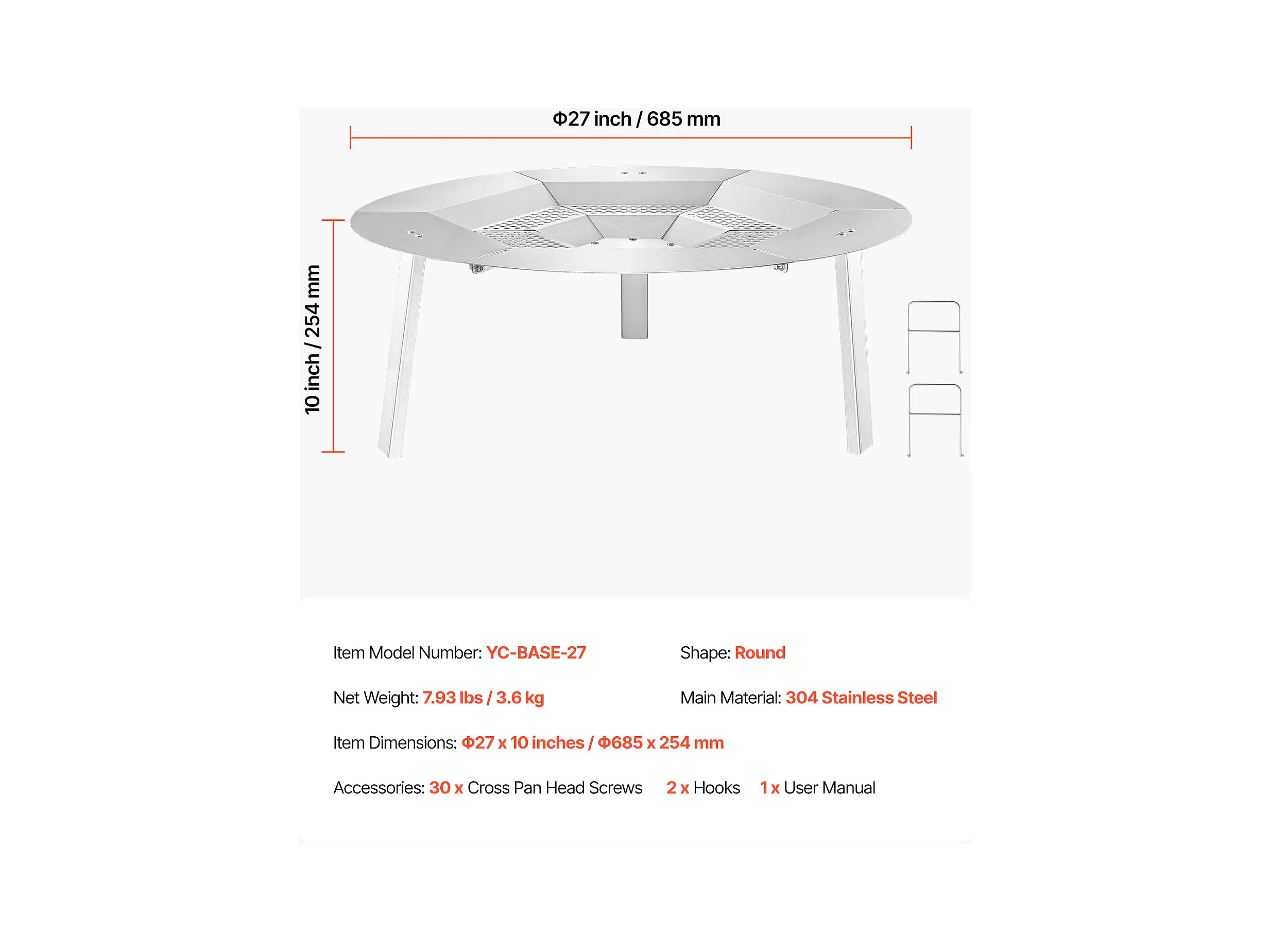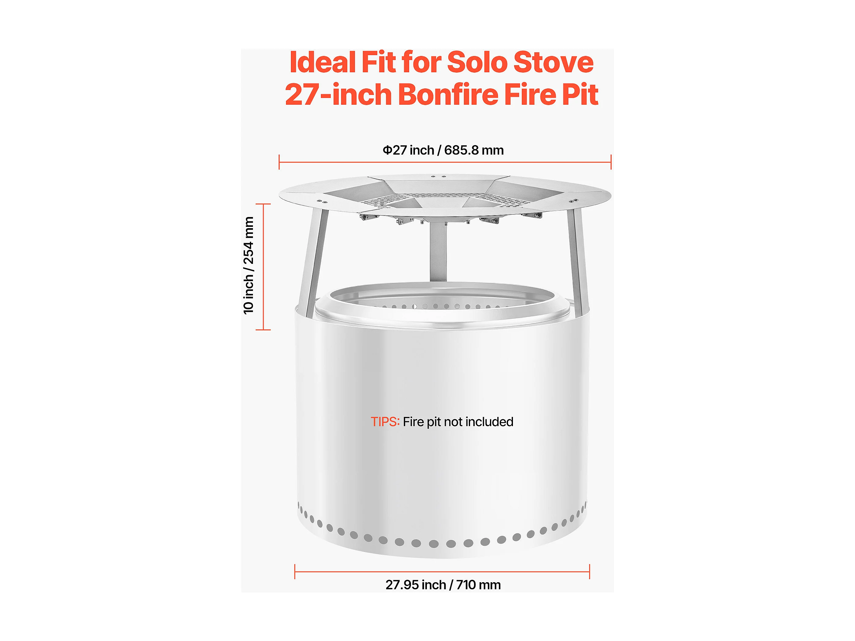 Diffuseur de Chaleur SucceBuy pour Brasero, 68.5x25.4 cm Protection Ronde pour Feu de Camp en Acier Inoxydable 304, Couvercle de Brûleur Amovible