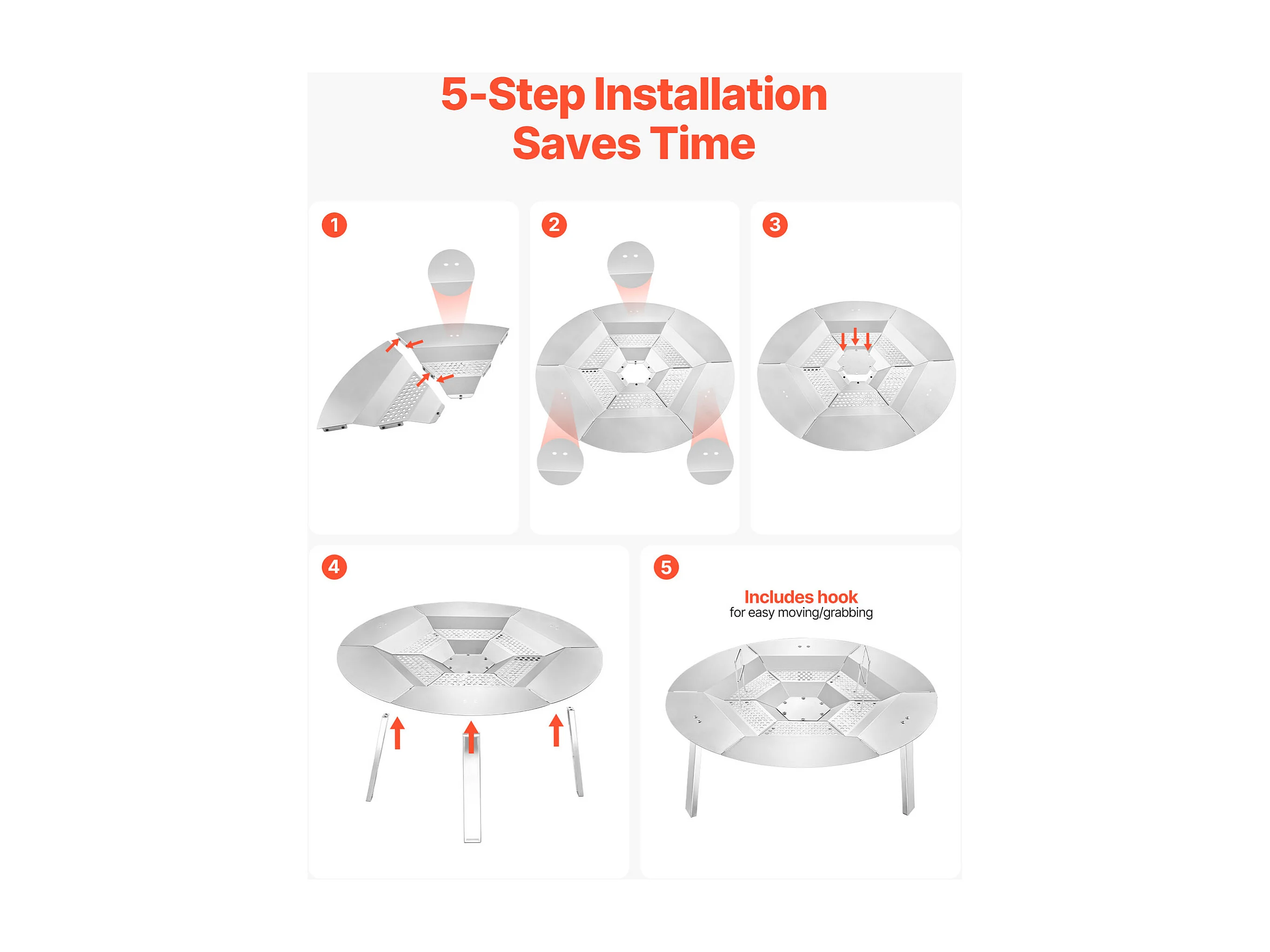Couvercle de Protection SucceBuy Anti-Étincelles de 50.8cm, Couvercle en Acier Robuste Renforcé, Couvercle de Foyer d'Extérieur avec Dessus à Ouverture Facile