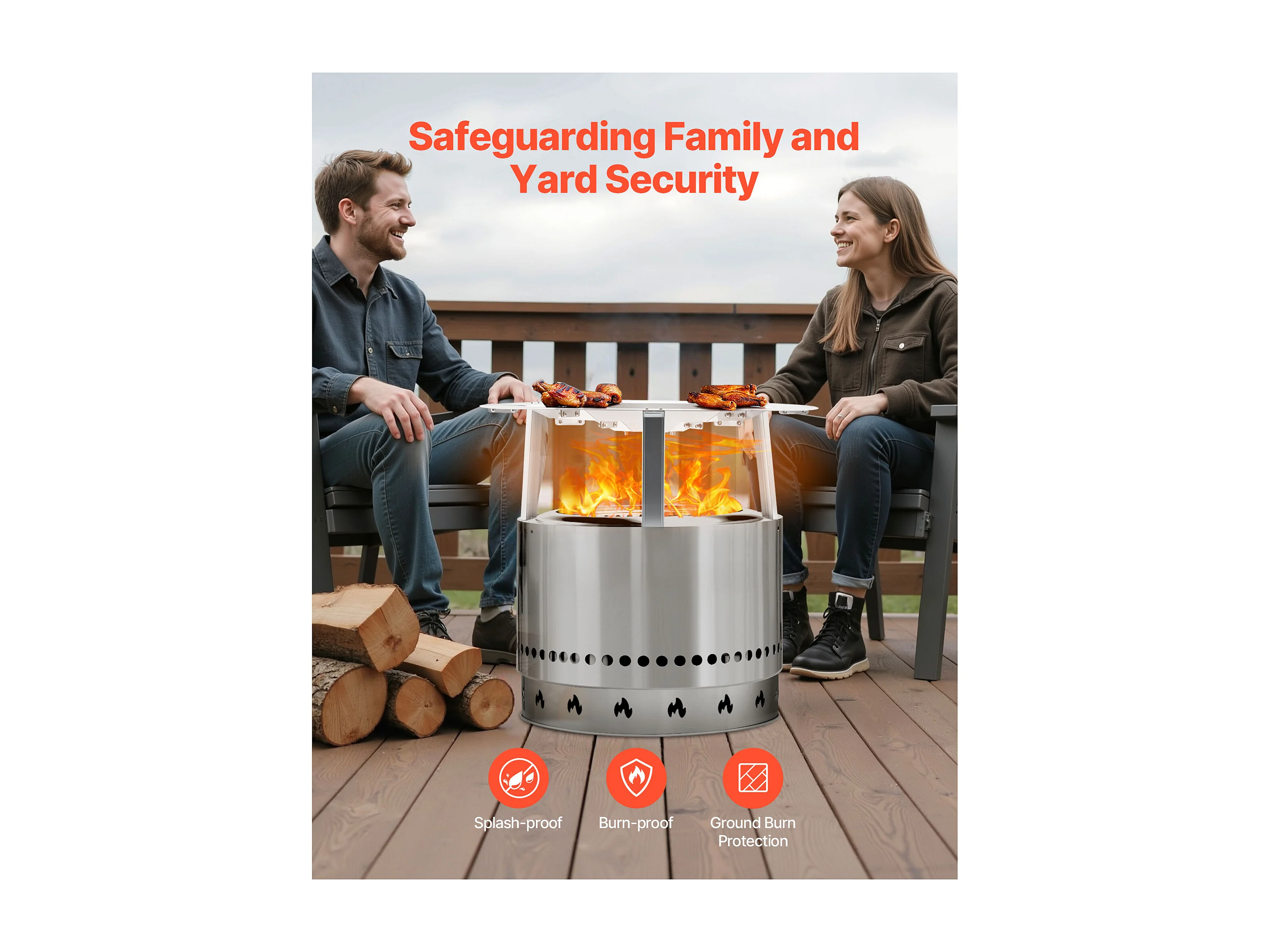 Couvercle de Brasero SucceBuy en Acier Inoxydable, 64.5 x 64.5 x 37 cm, Déflecteur de Chaleur Extérieur pour Feux de Camp, Camping et Chauffage au Bois