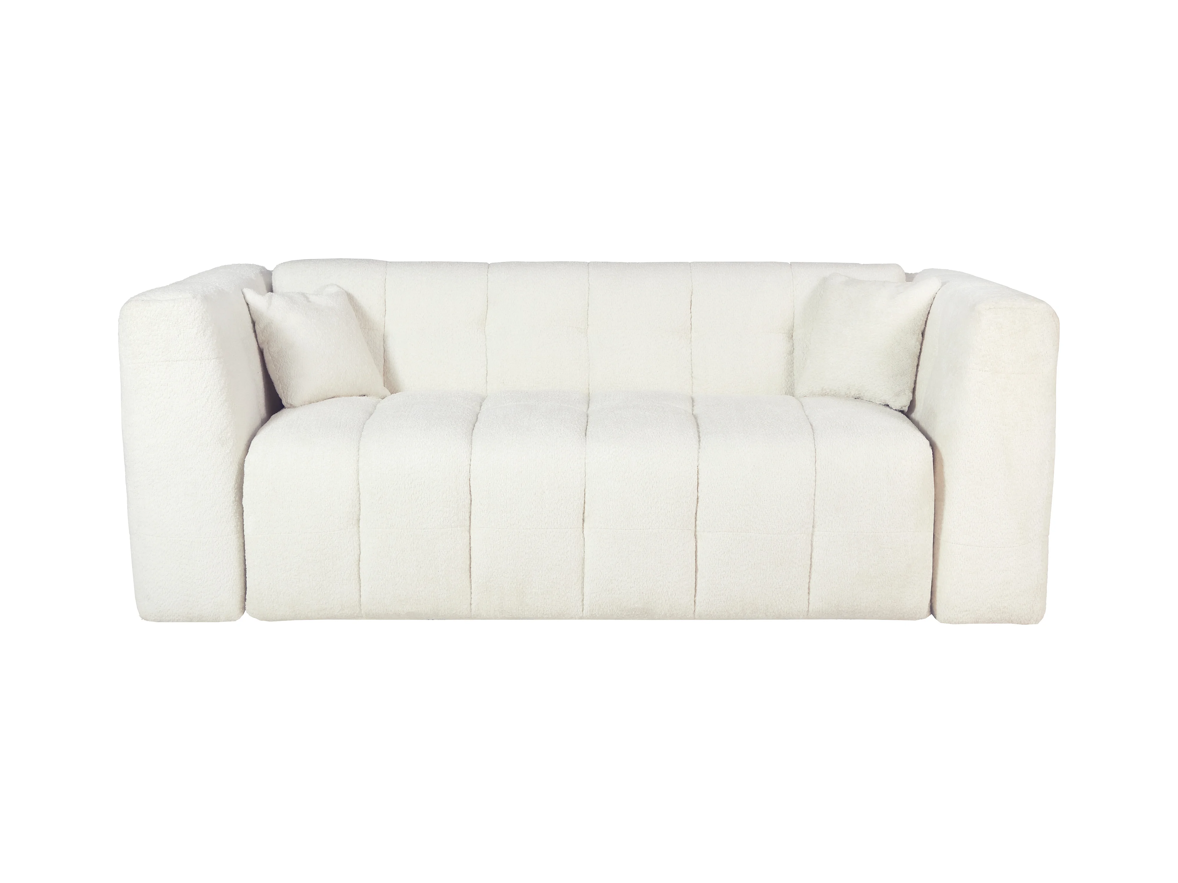 Canapé 3 places convertible express en tissu bouclette blanc cassé - Couchage 140 cm - Matelas 13 cm DILOME