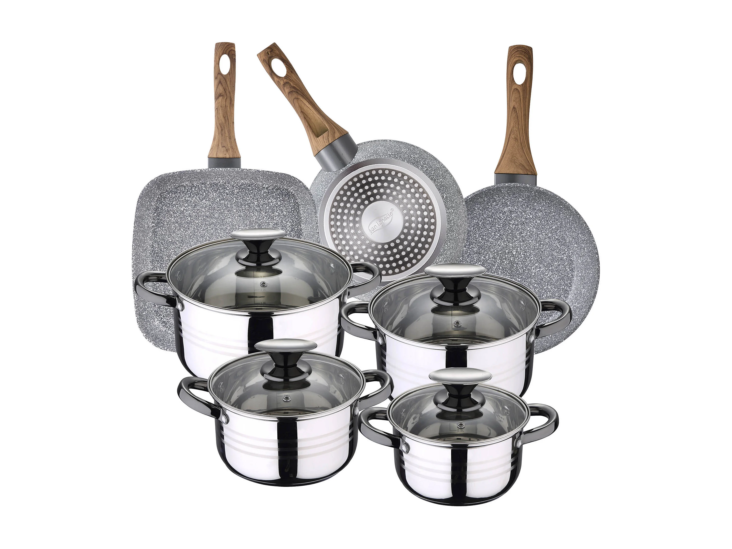 Dina Batterie de cuisine en acier inoxydable 8 pièces avec poêle (18/22 cm) et grill 28x28 cm Daimiel en aluminium forgé