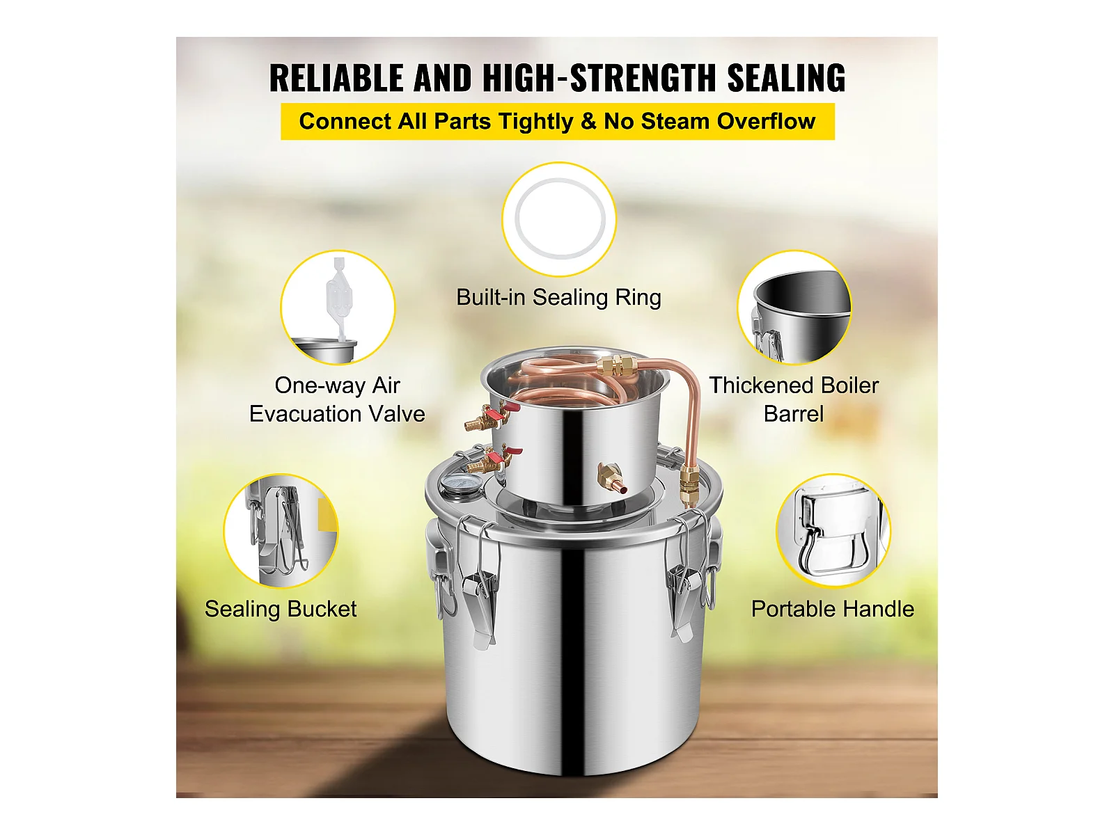 Distillateur d'Alcool SucceBuy, Alambic à Alcool, 11.4 L, Kit de Brassage en Acier Inoxydable, avec Serpentin en Cuivre