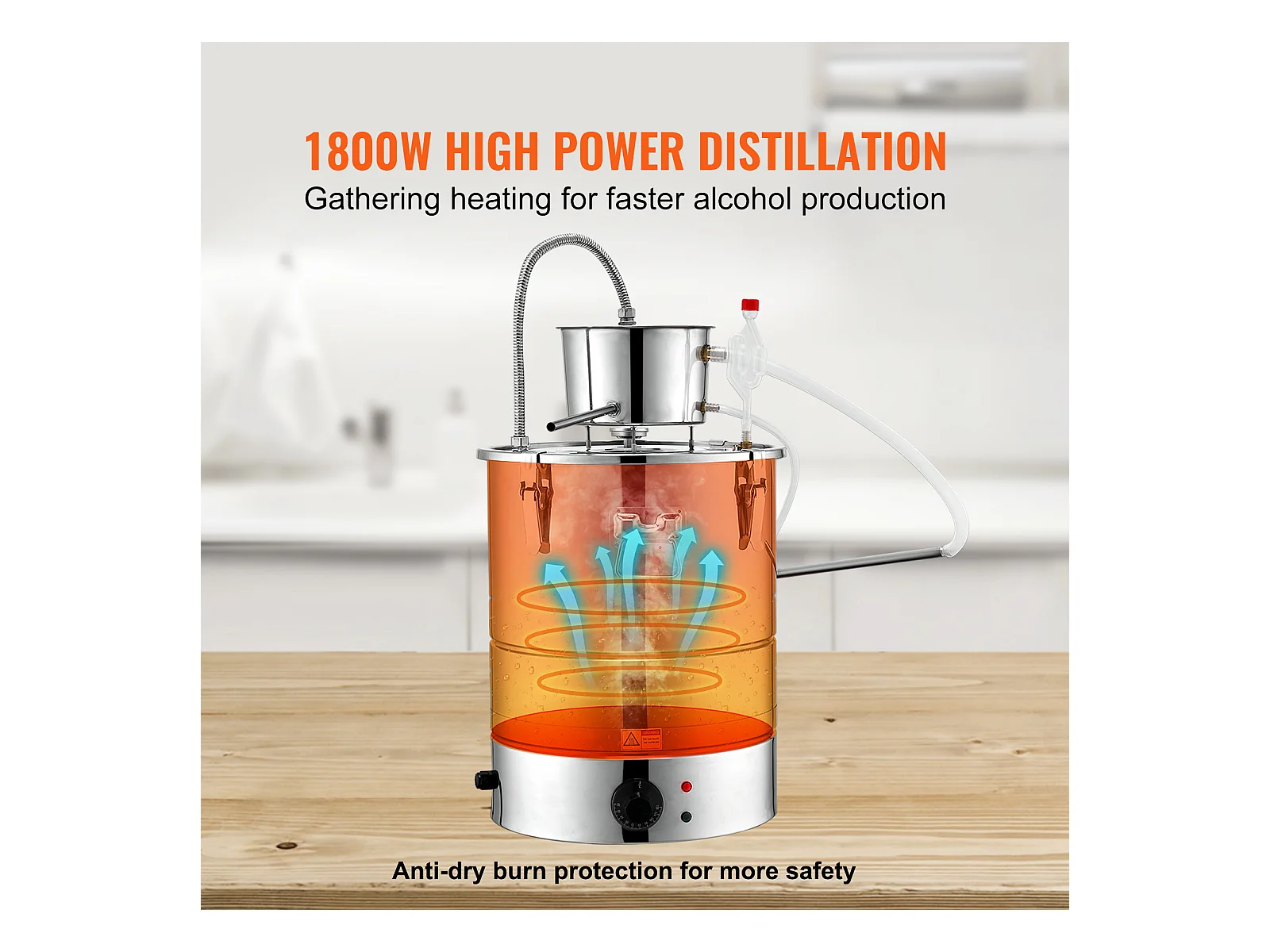 Distillateur d'Alcool SucceBuy Distillateur d'Eau Plate Moonshine 11 L avec Pompe à Eau en Acier Inoxydable