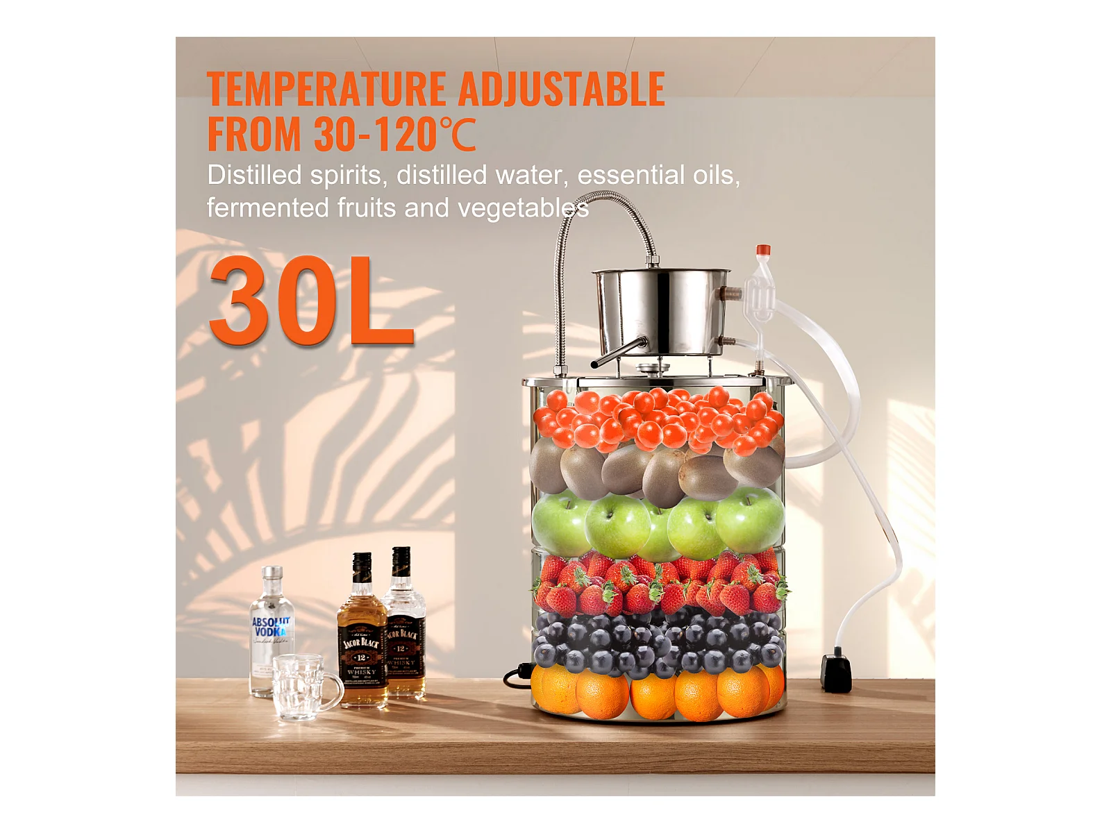 Distillateur d'Alcool SucceBuy Distillateur d'Eau Plate à Alcool 34 L avec Fût Thumper et Pompe à Eau