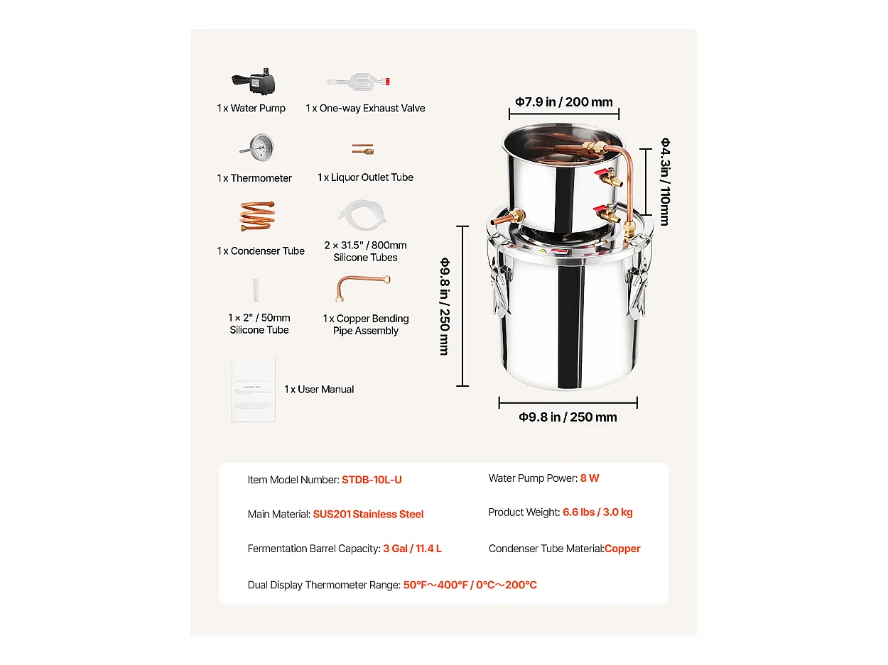 Distillateur d'Alcool SucceBuy Kit de Brassage de Distillateur d'Eau et d'Alcool Moonshine Still 11 L en Acier Inoxydable