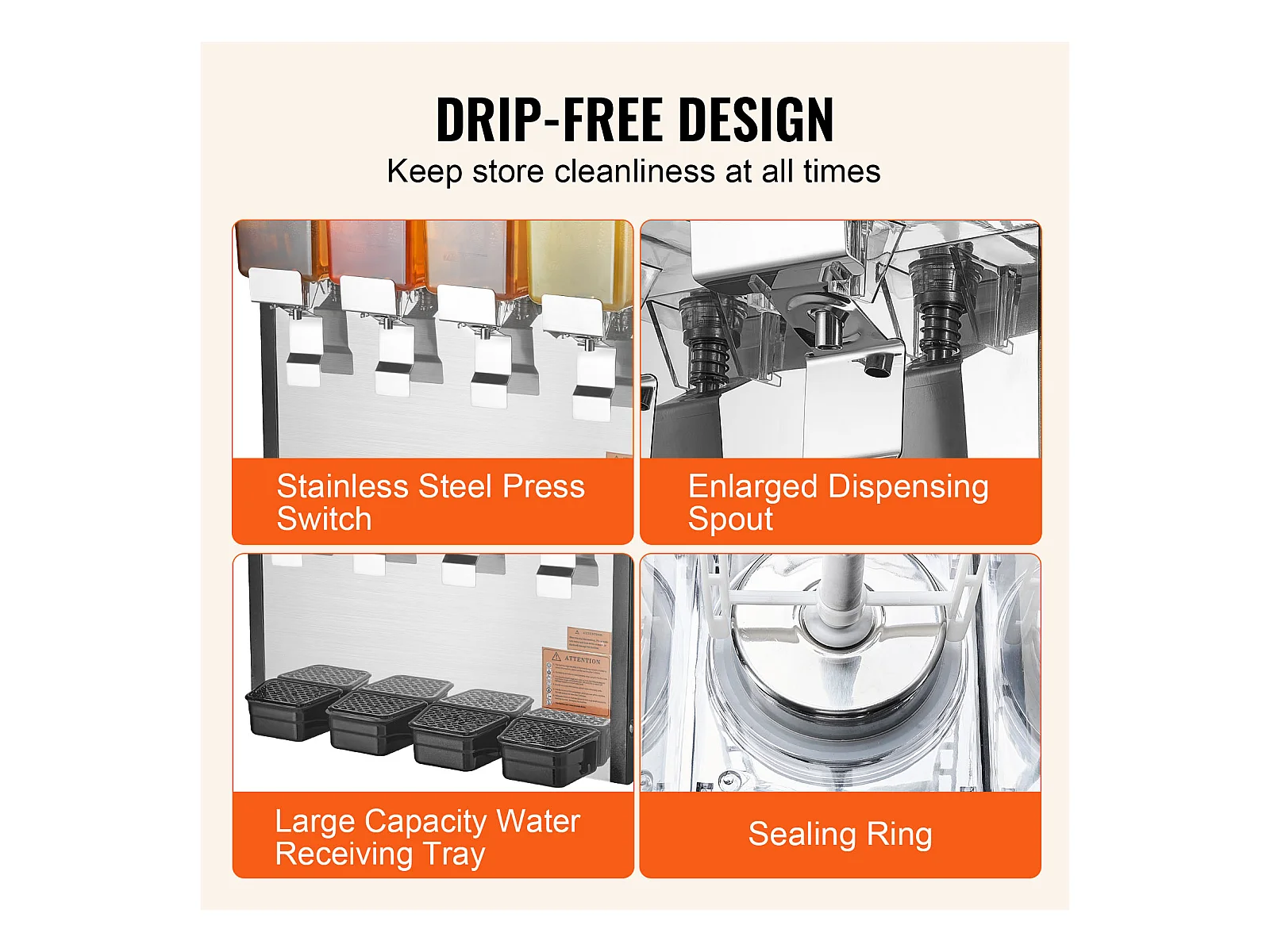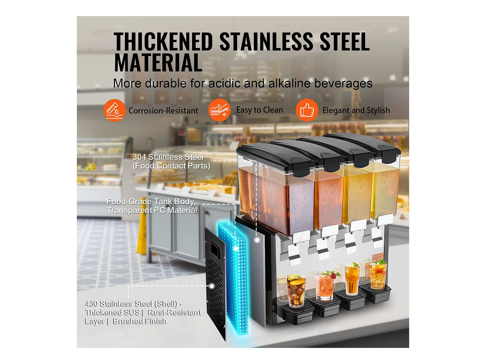 Distributeur de Boissons Commerciales SucceBuy 10 L x 4 Réservoirs Distributeur de Boissons Glacées et de Jus Froids