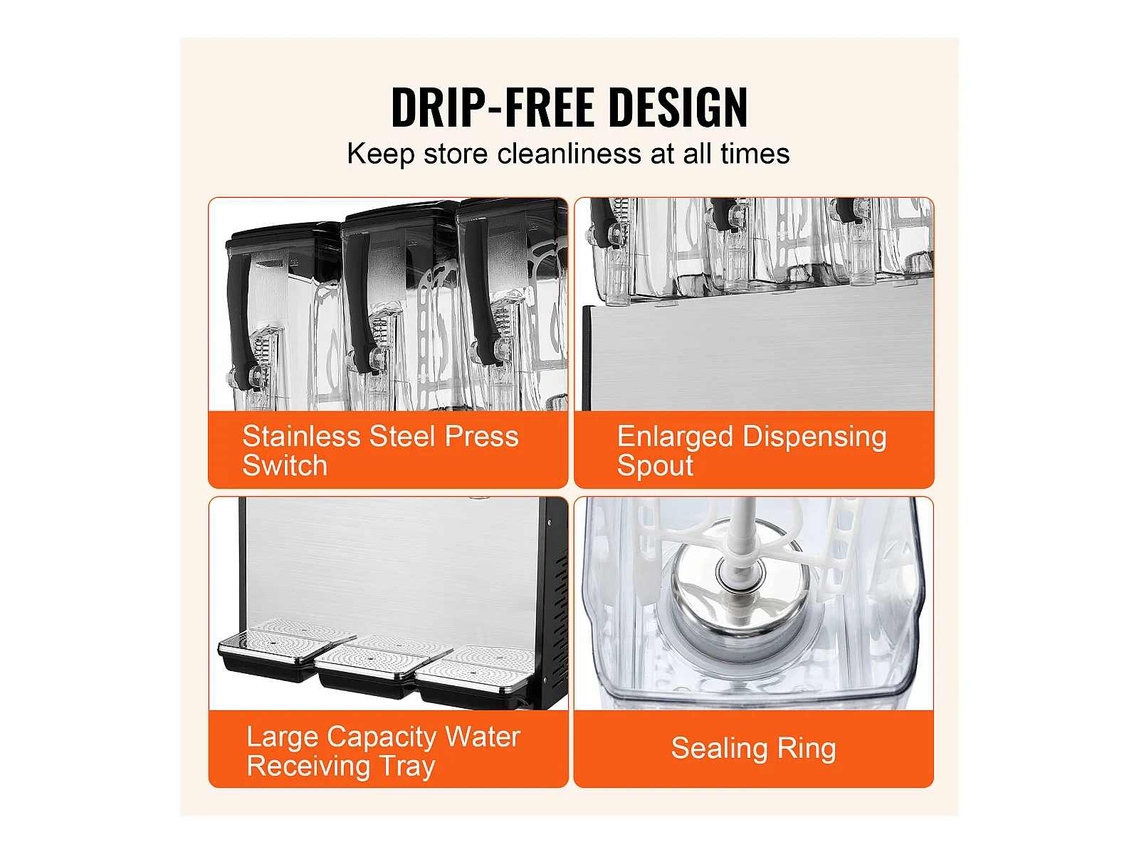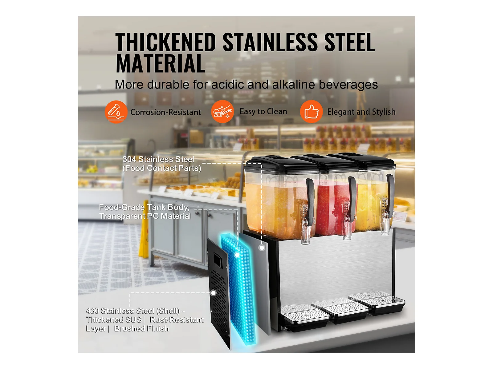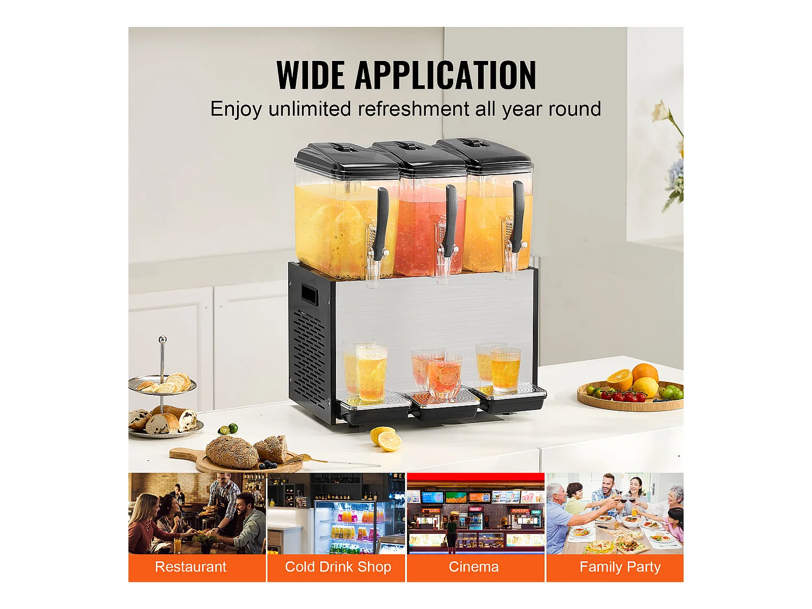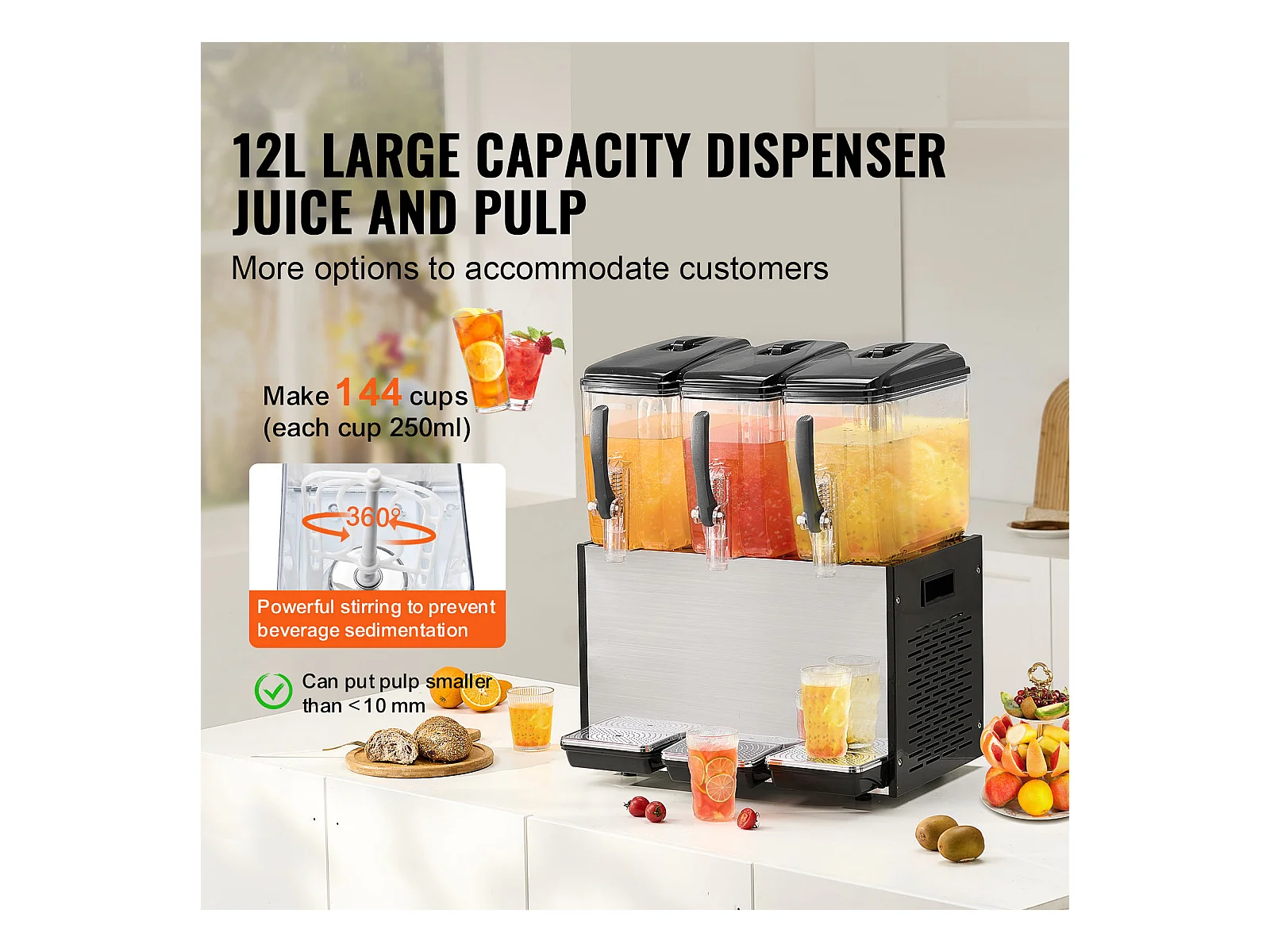 Distributeur de Boissons Commerciales SucceBuy 12 L x 3 Réservoirs, Distributeur de Boissons Glacées et de Jus Froids