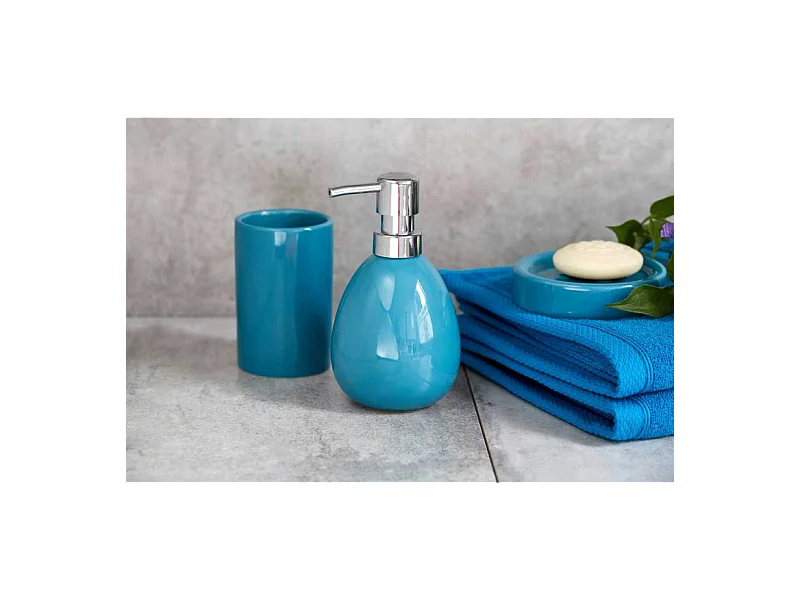 Distributeur de savon en céramique "Polaris" - Bleu pétrole - 390 ml
