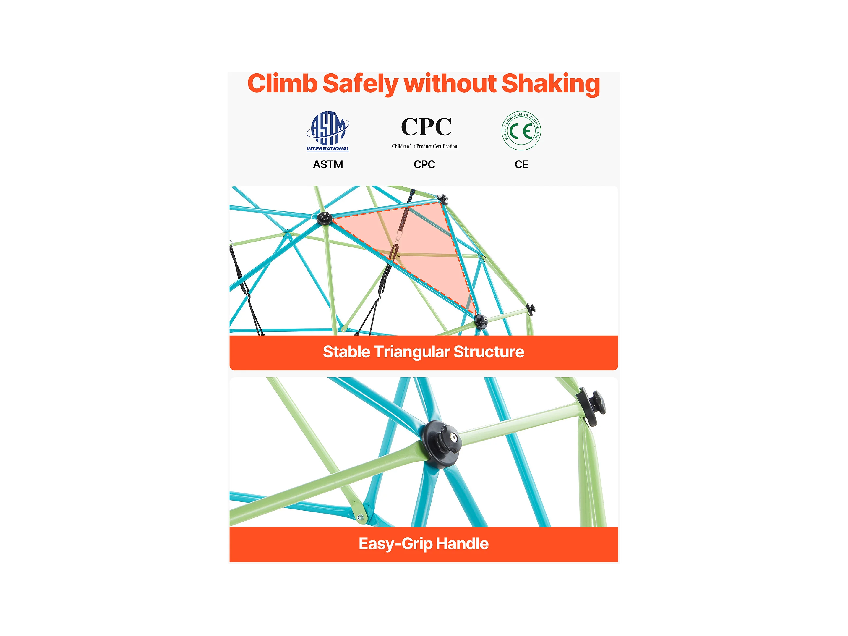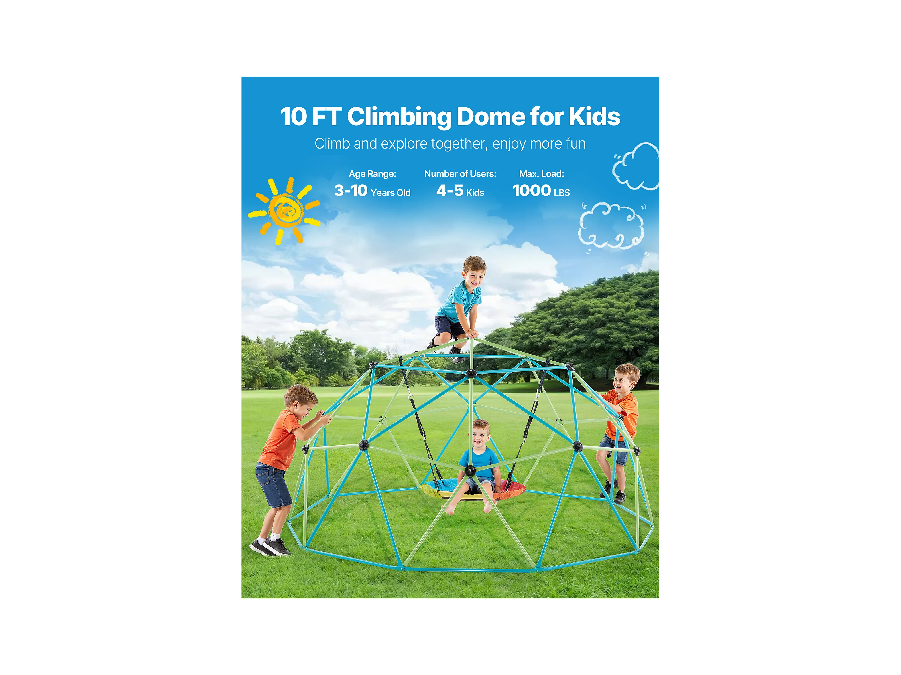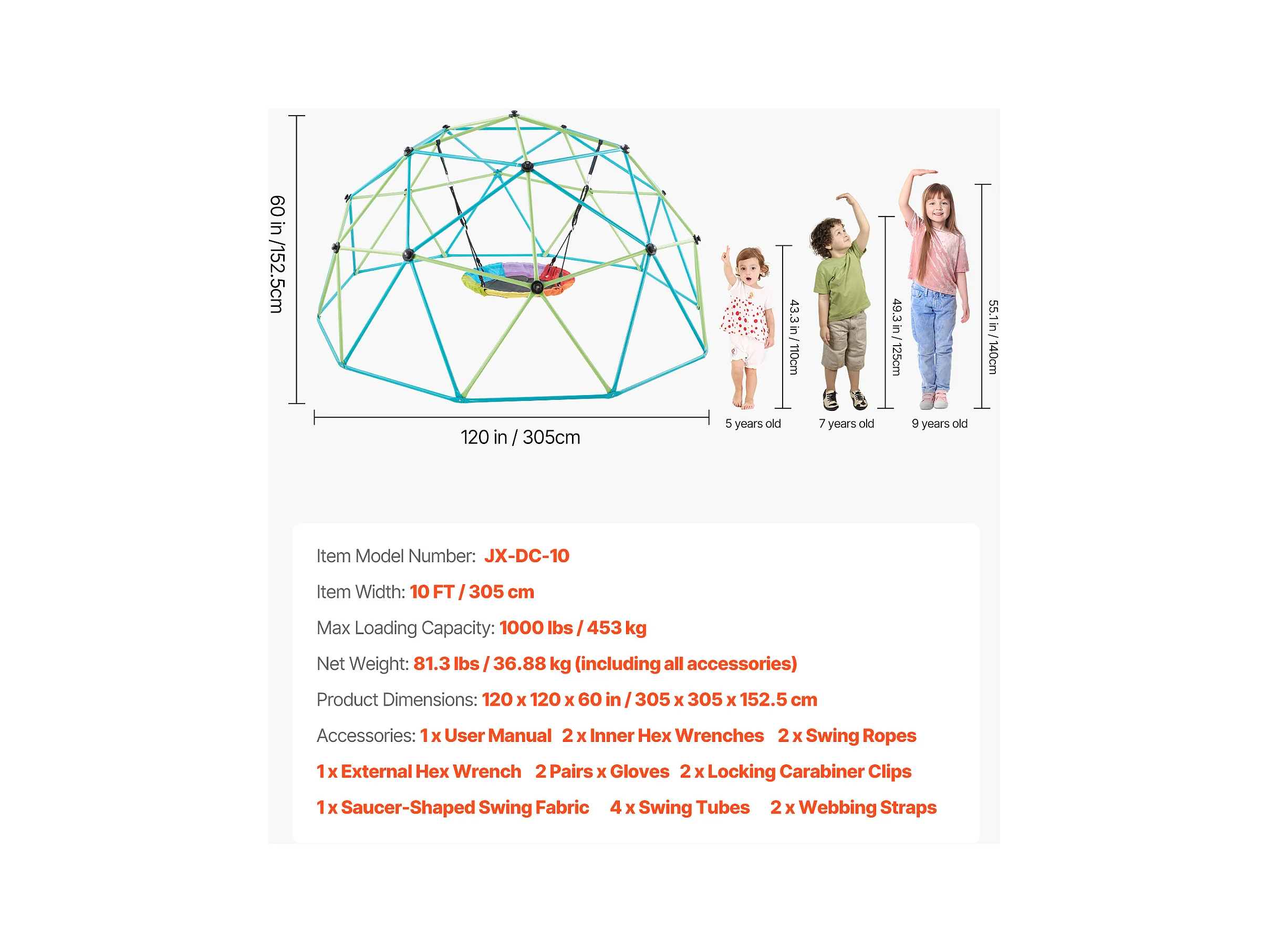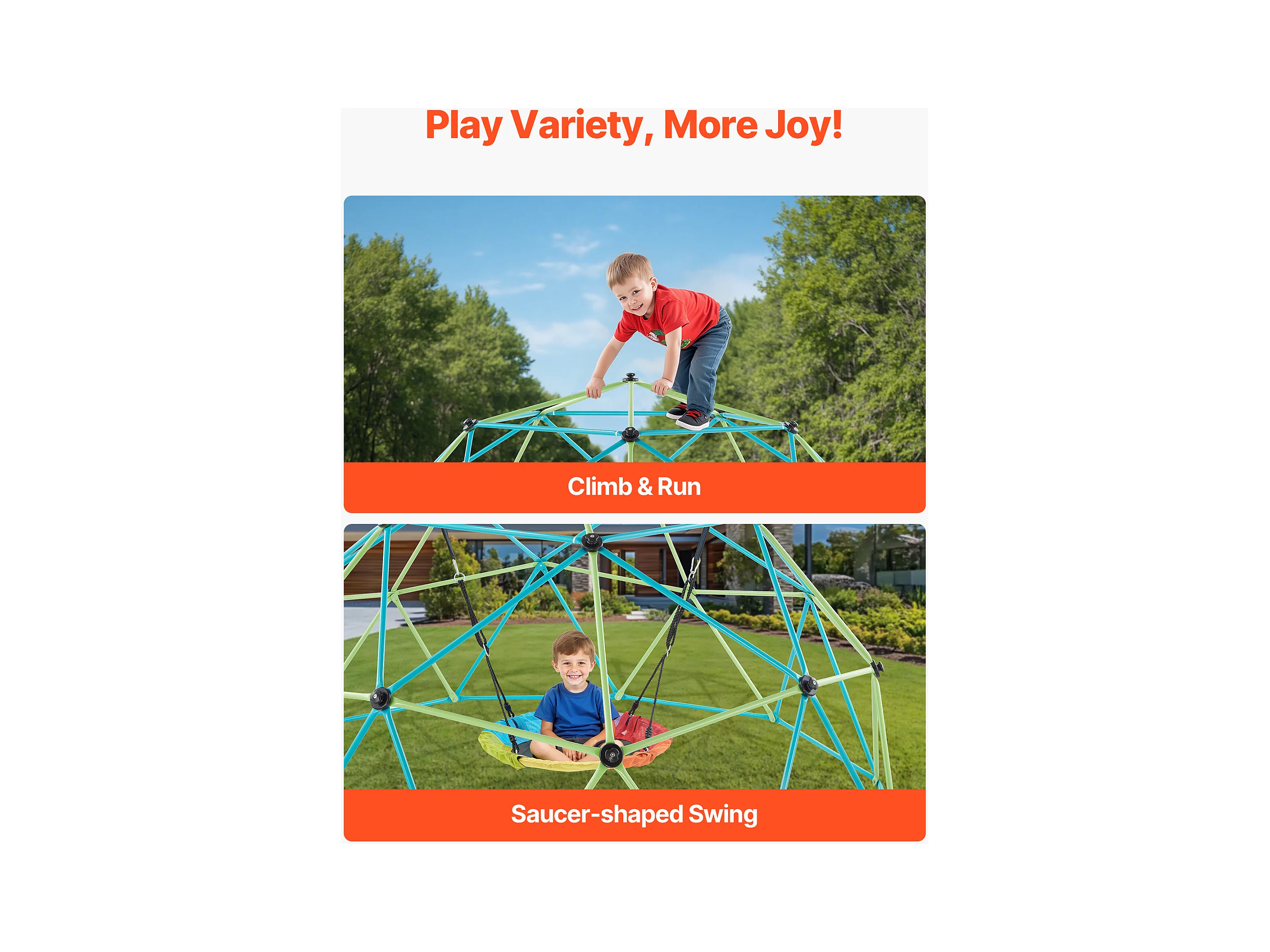 Dôme d'Escalade SucceBuy Géométrique 305 cm, Cage à Grimper avec Balançoire Soucoupe, Cage à Écureuil Solide avec Capacité de Charge de 453 kg