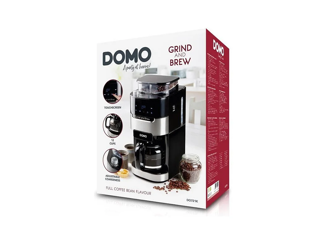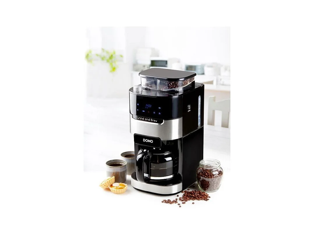 Cafetiere filtre avec moulin intégré - DOMO - DO721K - 900 W - 1,5 L - 12 tasses - 200 g de grains - Ecran LCD - 3 intensités