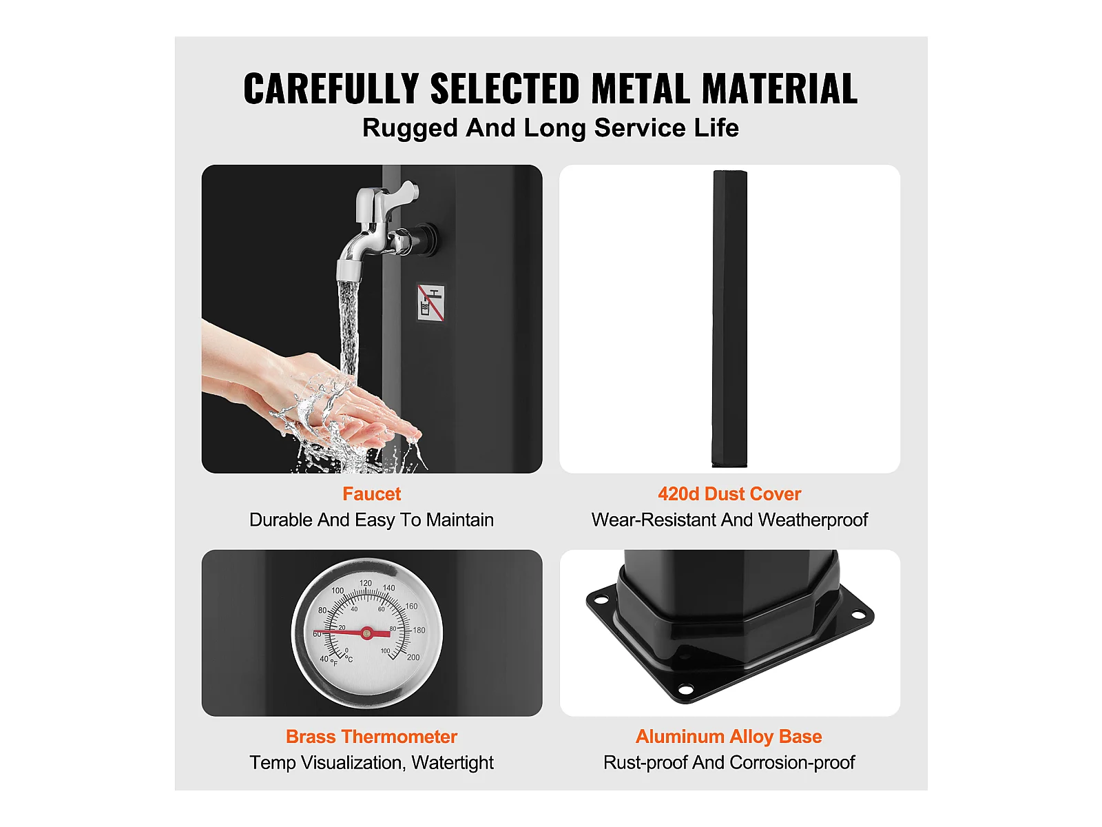 Douche Solaire Extérieure Chauffante SucceBuy 40 L avec 2 Têtes et Base Réglables, Au Bord de la Piscine