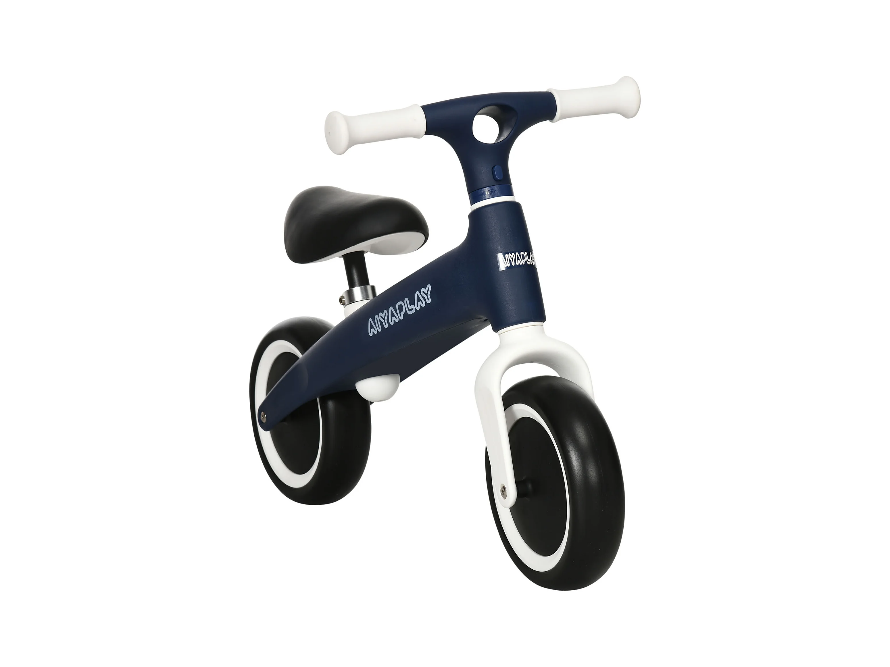 Draisienne vélo enfant 18-36 mois - selle réglable, poignées antidérapantes, roues mousse increvables - blanc bleu marine