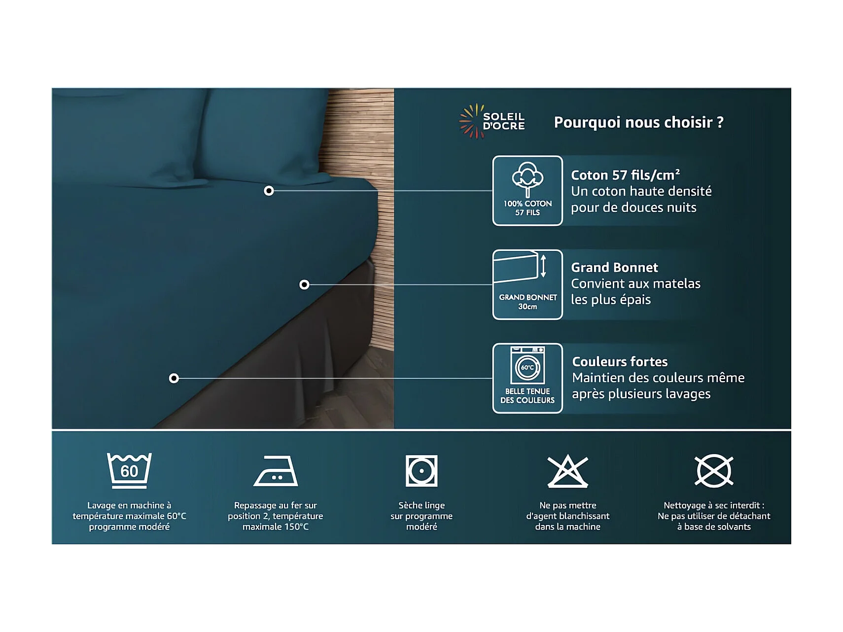 Drap housse en coton 57 fils 90x190 cm UNI brique, par Soleil d'ocre