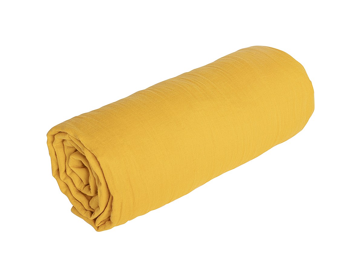 Drap housse en gaze de coton LEGERO - 140 x 190 cm - moutarde